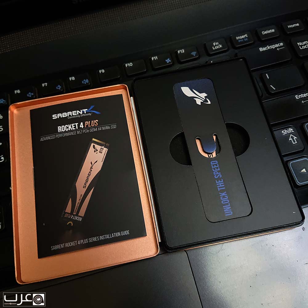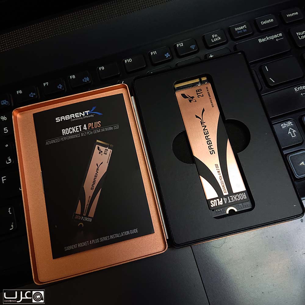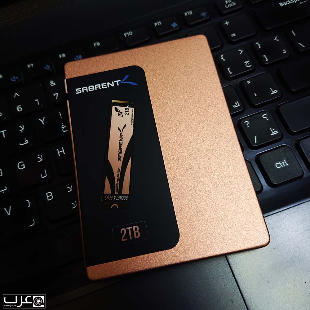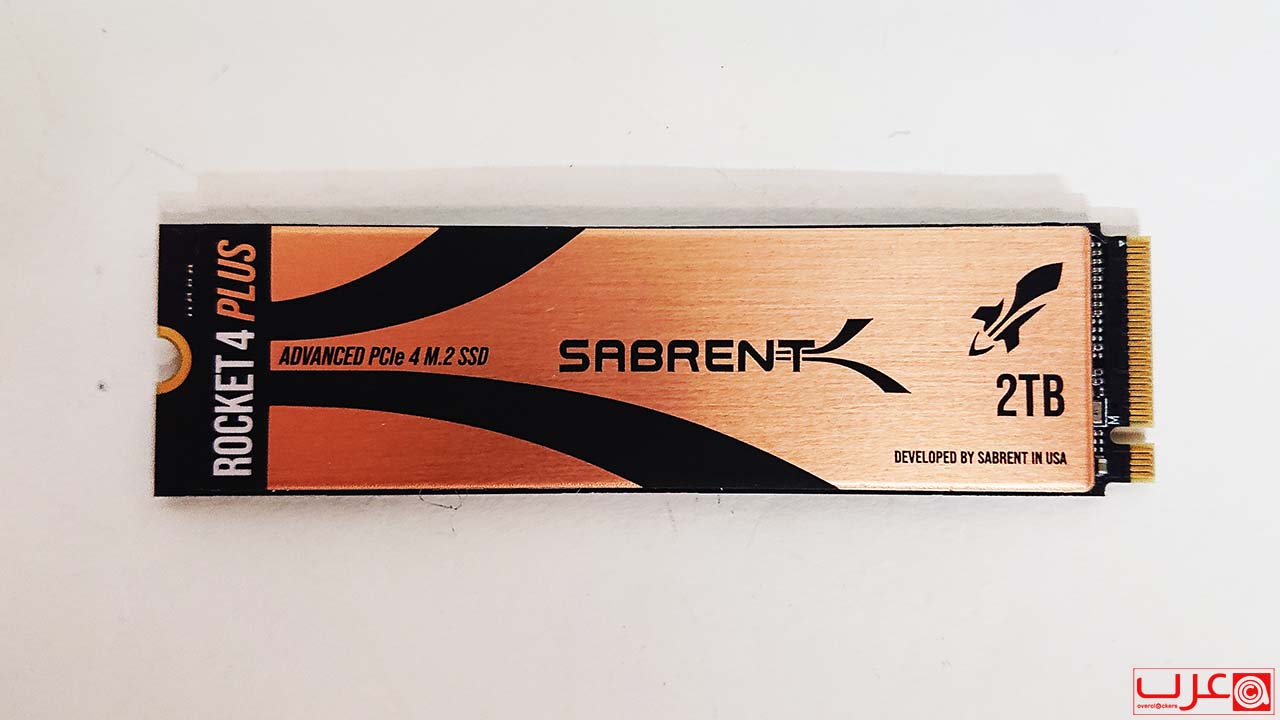 يتميز القرص بلون مشتته الذهبي والذي يحتوي خطوط شعار واسم SABRENT، مما يكسبه منظرا خلابا عند تركيبه على اللوحة الام.