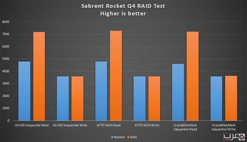 ستجدون مقارنة كاملة لسرعات القراءة والكتابة لقرص Rocket Q4 NVMe مع العديد من الاقراص الاخرى تعمل بواجهة SATA و PCIe، الاختبارات تمت بواسطة ثلاث برامج اختبار.