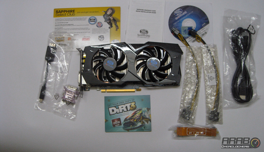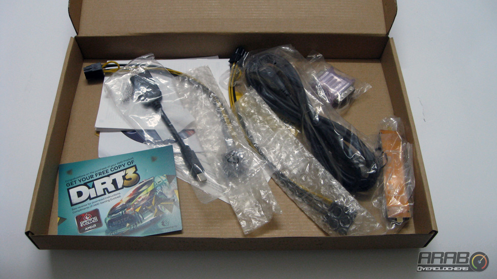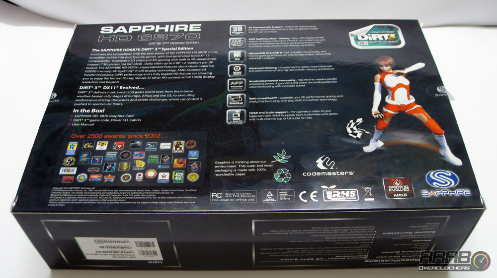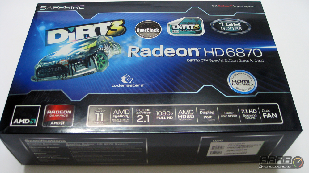 علبة Sapphire المعتادة ولكن هذه المرة تم ذكر وجود لعبة Dirt 3 بشكل واضح مع التنويه عن ان البطاقة مكسورة السرعة
