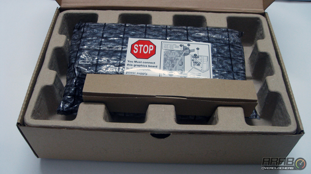 في الداخل نرى البطاقة مثبتة جيداً في كيس قوي منتفخ بفقاقيع الهواء لحمايتها