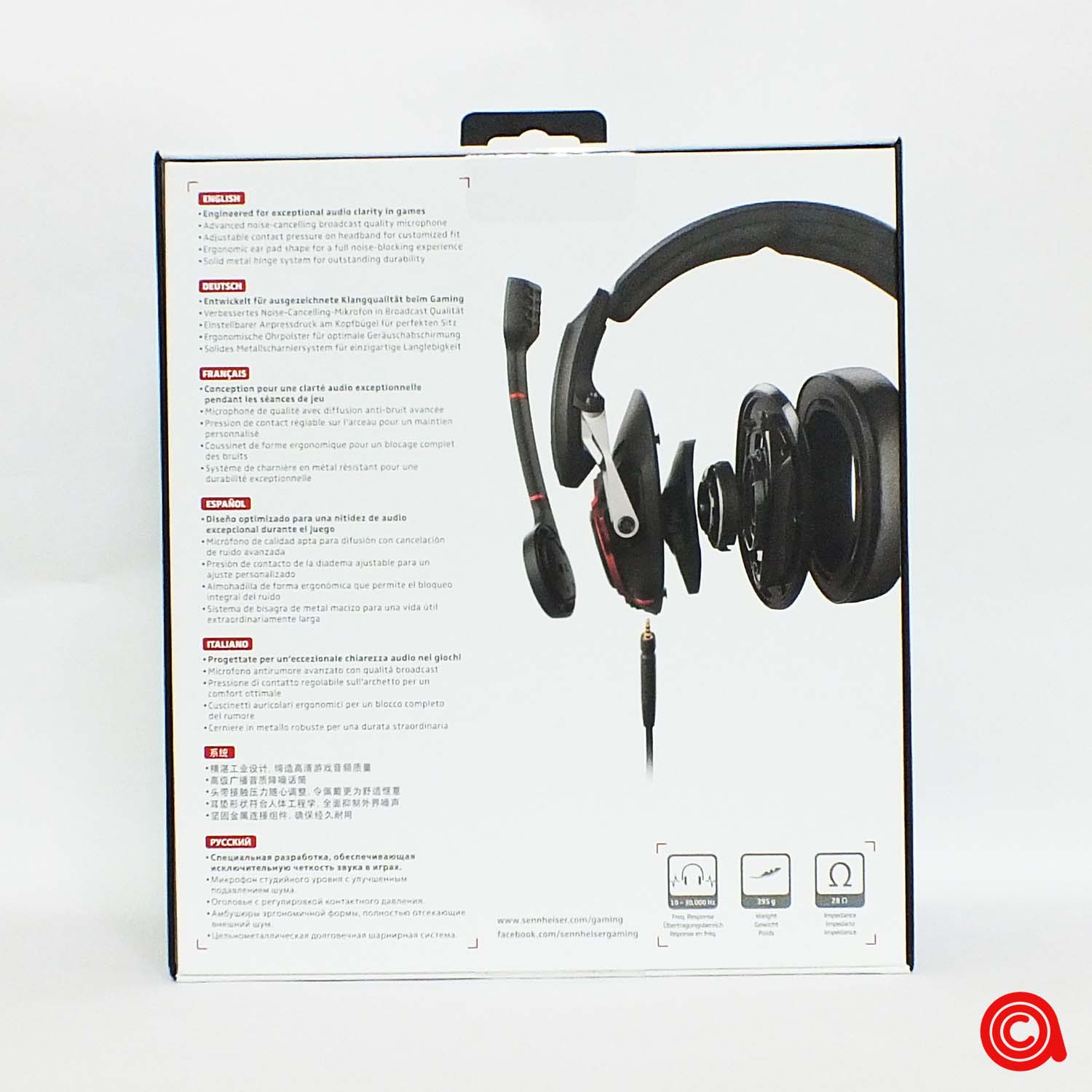 تأتي سماعة GSP 600 معبأة في صندوق أبيض قوي. يعرض الجزء العلوي الأيسر جميع المنتجات المتوافقة مع سماعات الرأس ويوفر الجزء العلوي الأيمن بعض التفاصيل حول ضمان سماعات الرأس. ويوجد قسم على الثلث السفلي في الجزء السفلي مع علامة Sennheiser التجارية، وقد تم الانتهاء من ذلك باللون الأزرق الذي تستخدمه شركة Sennheiser لمعظم عبواتها.