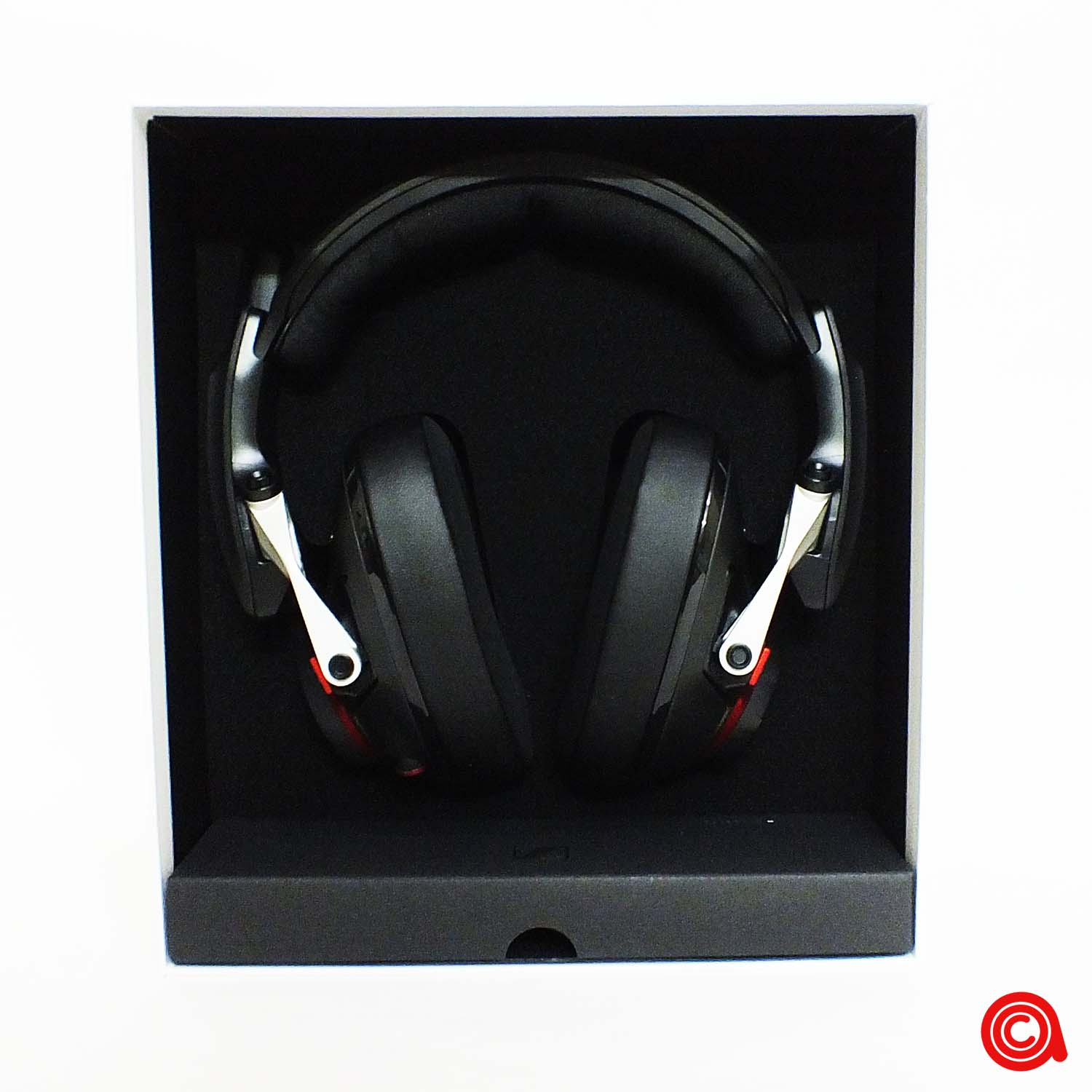 عند رفع الغطاء عن الصندوق، نجد انه يتم تثبيت سماعات الرأس في مكانها بواسطة حشوة رغوية صلبة، وفي الأسفل يوجد صندوق من الورق المقوى يحتوي على جميع الملحقات المرفقة بسماعة الرأس.