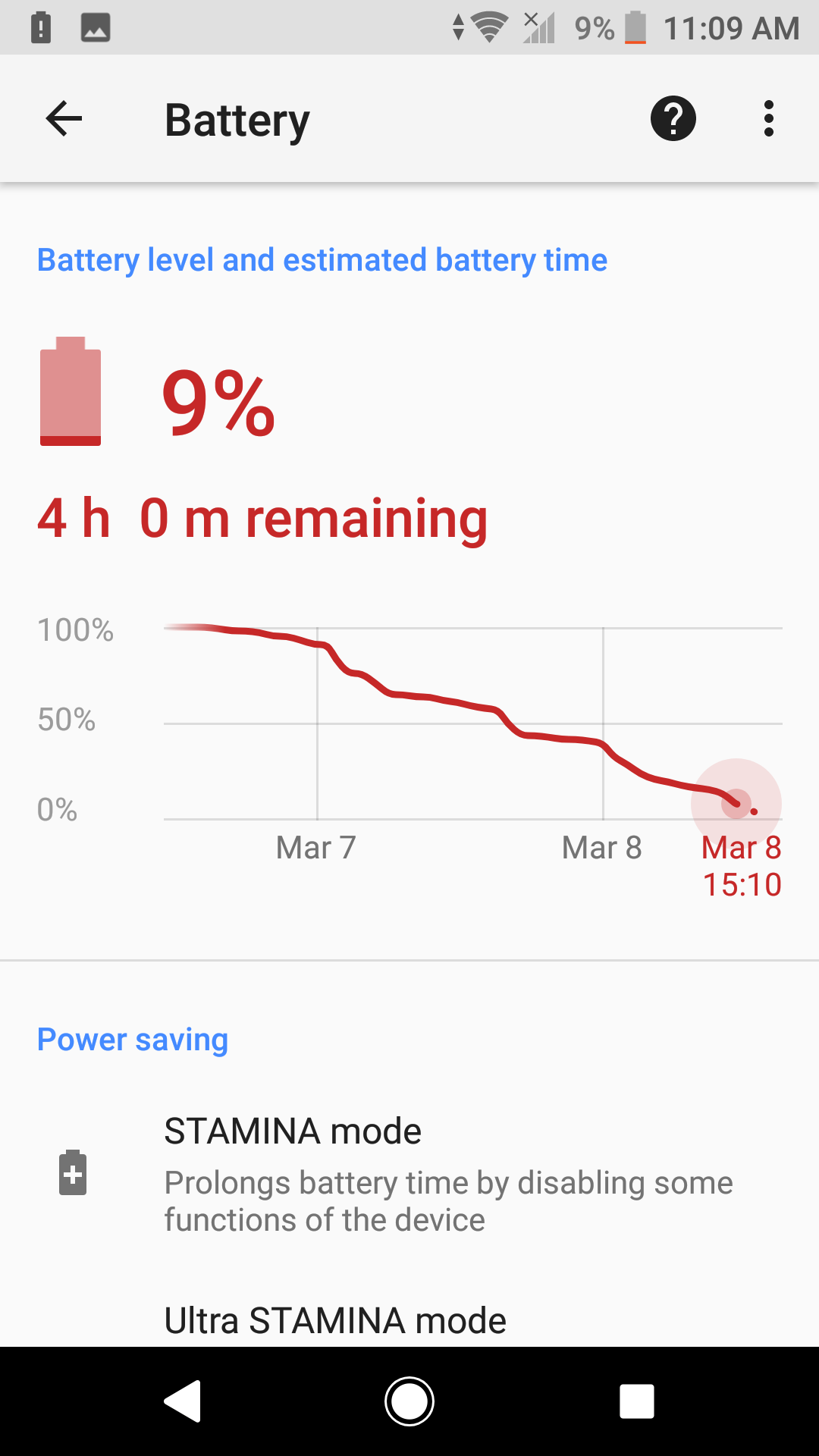 يمتلك هاتف XA2 Ultra بطارية بقدرة تبلغ 3580 ملي/امبير، وفي الحقيقية فاداء البطارية مميز للغاية، فالهاتف سيصمد معك لمدة 20 على الاقل من الاستخدام المتواصل للمهام مثل فحص رسائل البريد الإلكتروني، وسائل التواصل الاجتماعية، والرسائل النصية، وتصفح الإنترنت أو يوتيوب من خلال شبكات WiFi او الجيل الرابع LTE ومع البعض سيتجاوز عمر البطارية 24 ساعة، نعم اكثر من يوم،كل هذا مع 5 ساعات ونصف والشاشة تعمل وهذا بفضل الاستخدام المنخفض للطاقة في معالج 630 بالاضافة الى تنظيم استخدام الطاقة من سونى، ويمكن زيادة عمر البطارية اذا كنت بعيدا عن مكان شحن الهاتف بفضل خاصية STAMINA Mode الشهيرة من سوني.