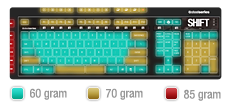 قامت Steelseries ببعض اللمسات علي الأزرار لعلها تتوافق مع حمهور اللاعبين أكثر وذلك بجعل قوه الضغط علي الأزرار تختلف من منطقة لأخري فجعلت أكثرها أستخداماً أقلهم تطلباُ لقوة الضغط كما نري في الصورة بمنطقة ال60gram