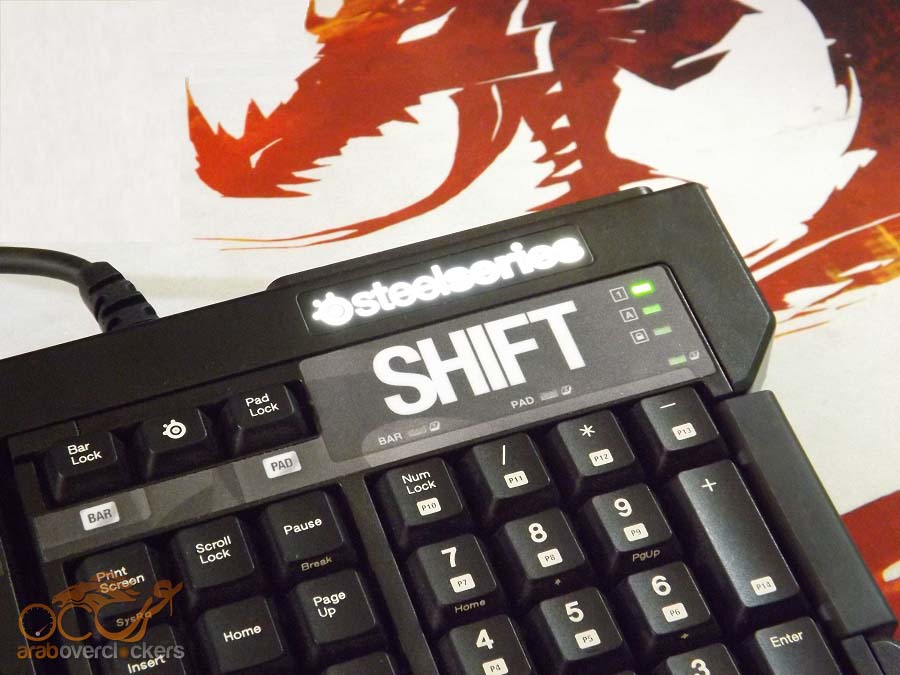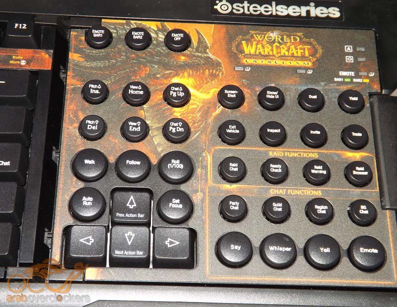 أزرار NUM pad وكيف تم أستغلالها. والرسم الخاص باللعبة بالتنين الذي سبق ورأيناه علي رقعة الفأرة التي راجعناها من قبل والموجهة لمحبي لعبة WOW مراجعة لفأرة WoW MMO Legendary Edition ورقعة Deathwing Edition الأحترافيتين من SteelSeries .