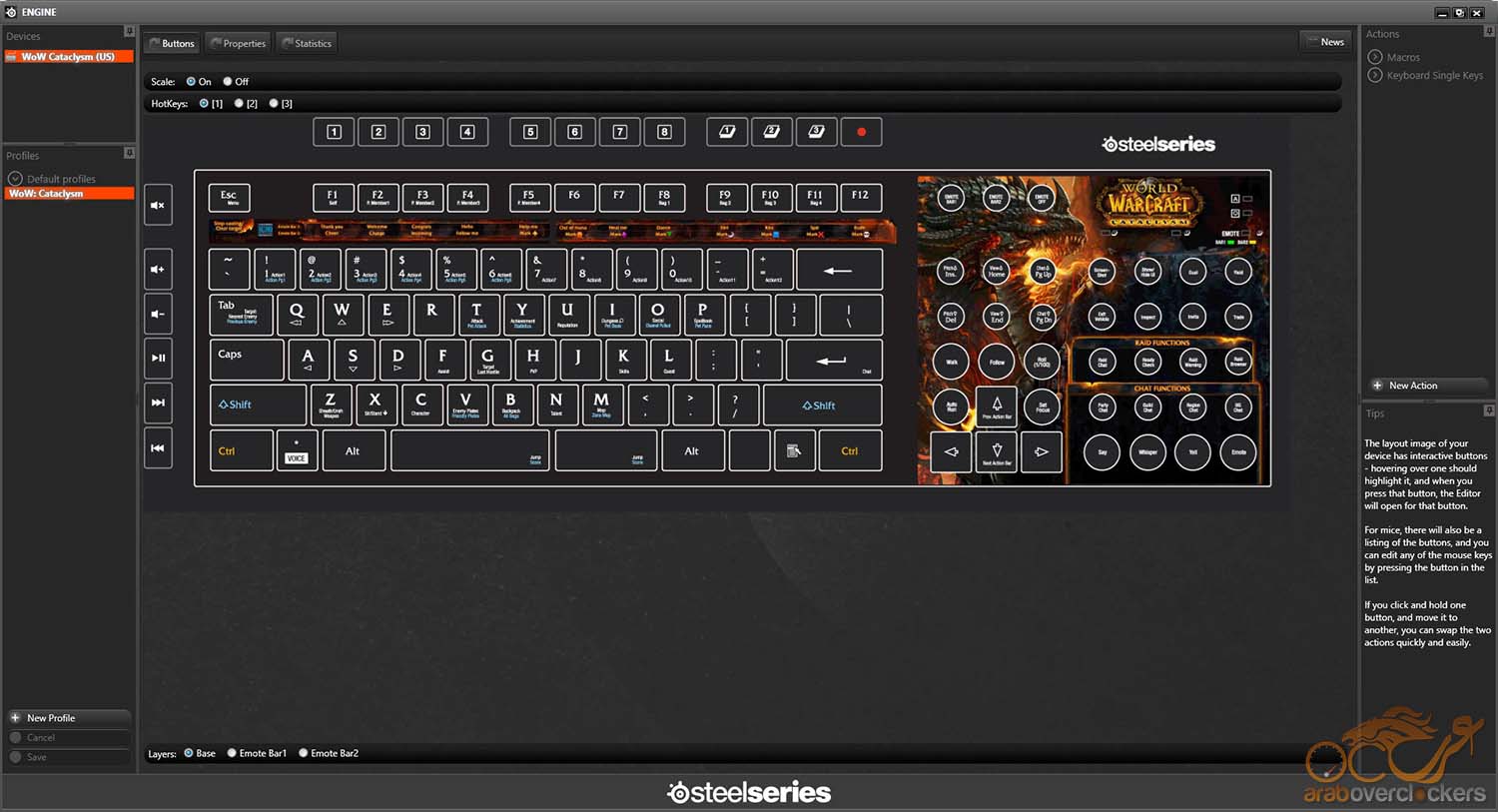 الأن وقد قمنا بتوصيل طاقم أزرار WOW المُرفق مع لوحة المفاتيح نري أن الLayout الخاص بالبرنامج قد تغيير وأصبح الشكل يعبر عن طاقم الأزرار الذي تم توصيلة.