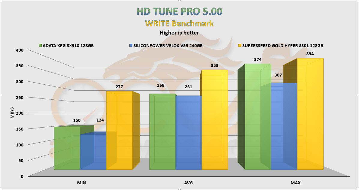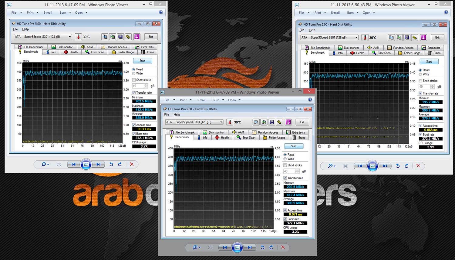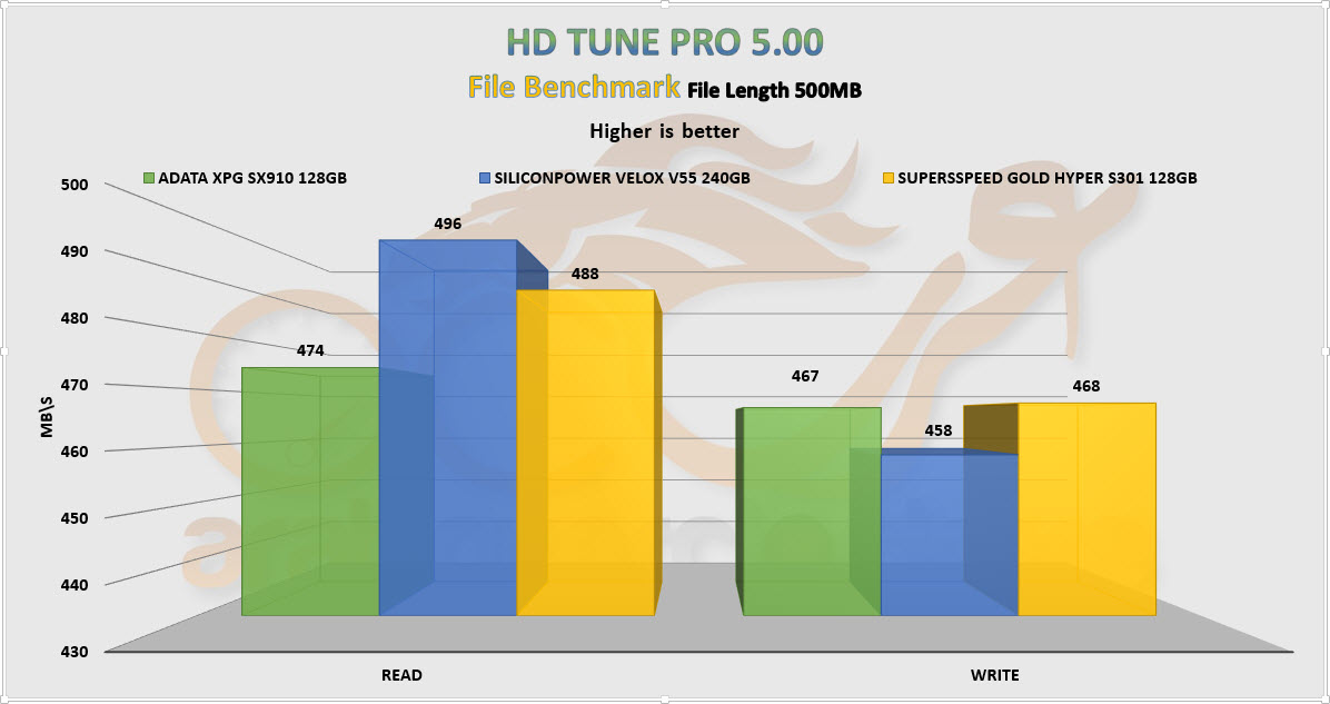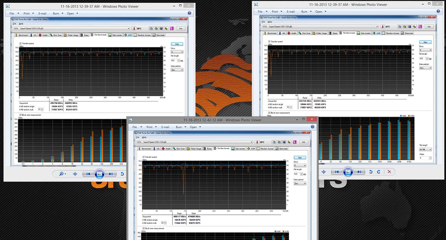 حافظ قرص Silicon Power علي مستواه المتميز خلال اختبار القراءة, لكن عاد قرص SuperSSpeed ليصفع كلا القرصين الأخرين في إختبار الكتابة كذلك في إختبار IOPS للكتابة والقراءة.