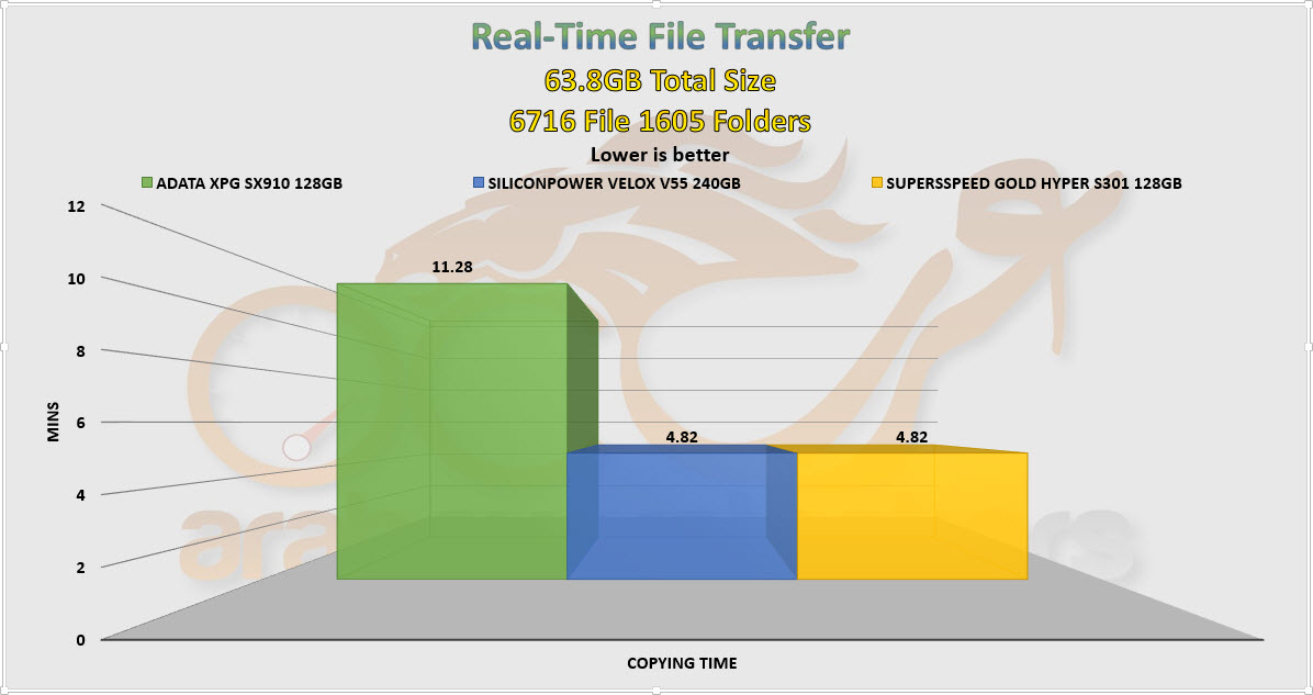 تساوي قرصي SuperSSpeed وقرص Silicon Power في الوقت اللازم للنقل.