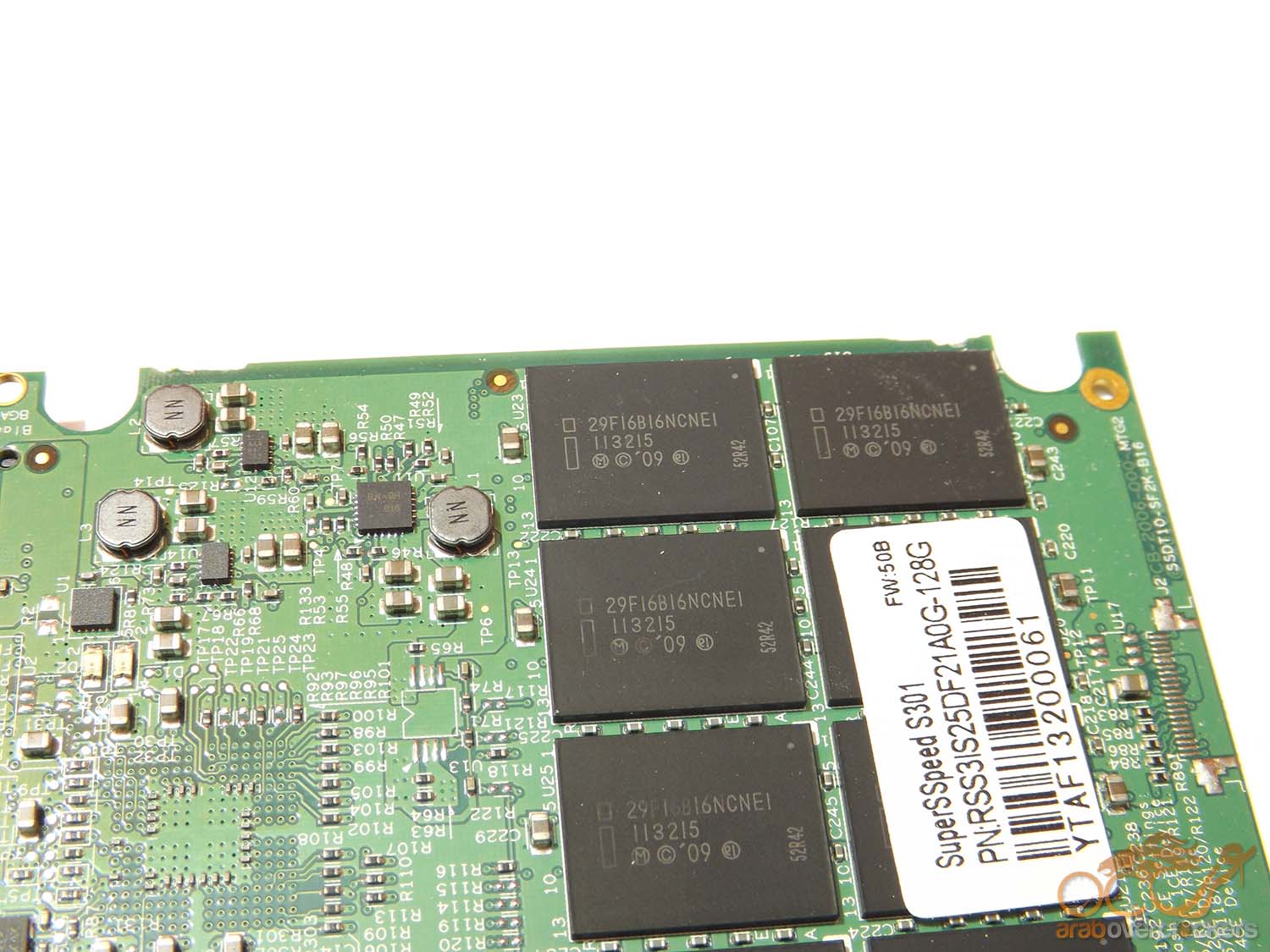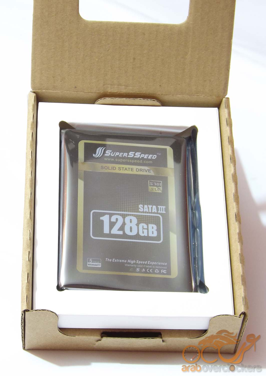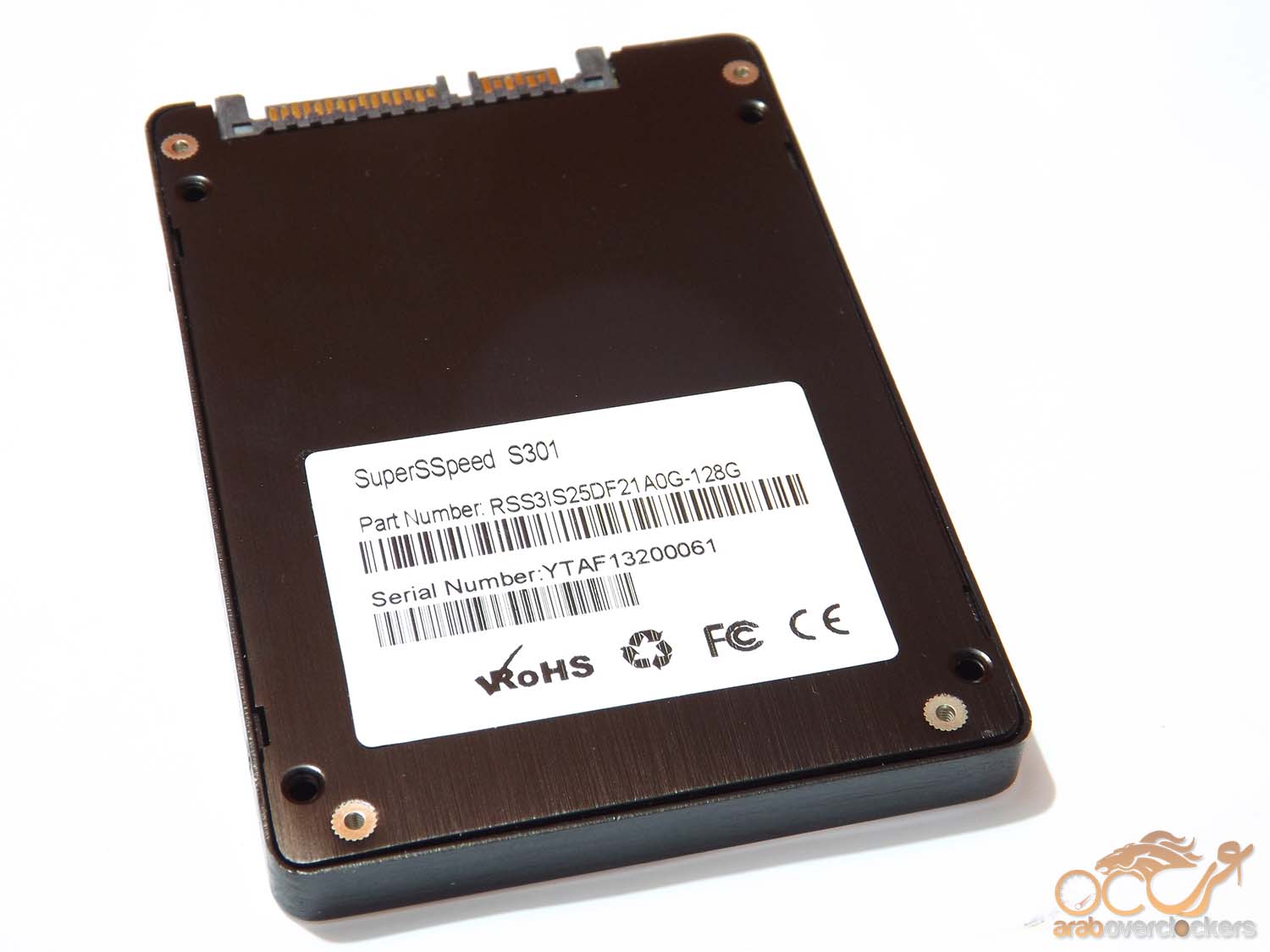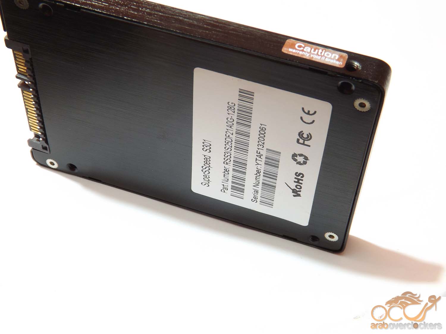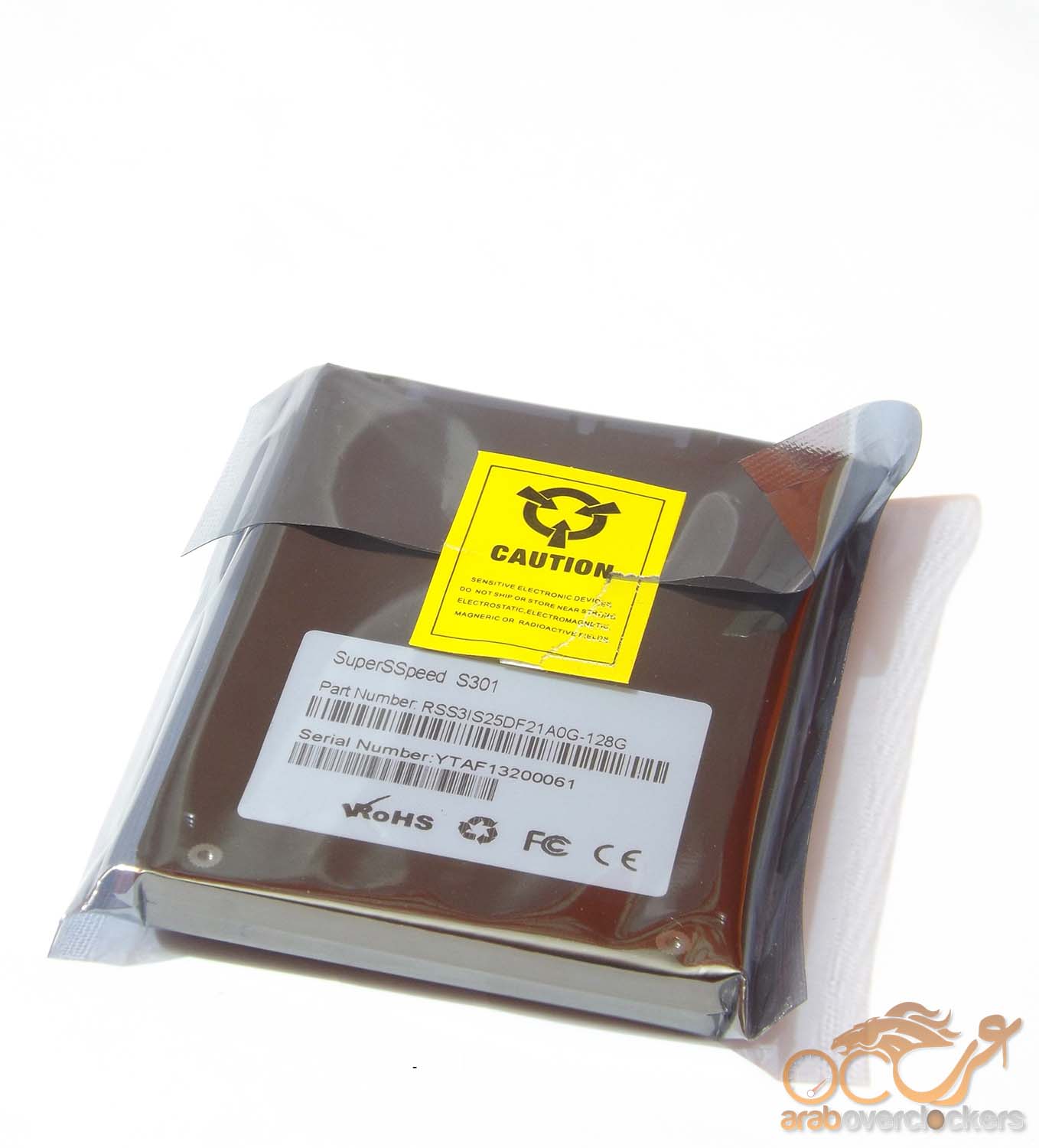 كل البيانات التي سبق وذُكرت علي العبوة بالخارج مدونة علي المُلصق علي القرص بداية بالحجم الذي يبلغ 128جيجابايت وموديل القرص S301 ونوع الشرائح باللون الذهبي أسفلها SLC وبالأعلي أسم الشركة والموقع الرسمي لها. وبالركن السفلي الأيسر ذُكرت فتره الضمان التي تبلغ 5 سنوات.