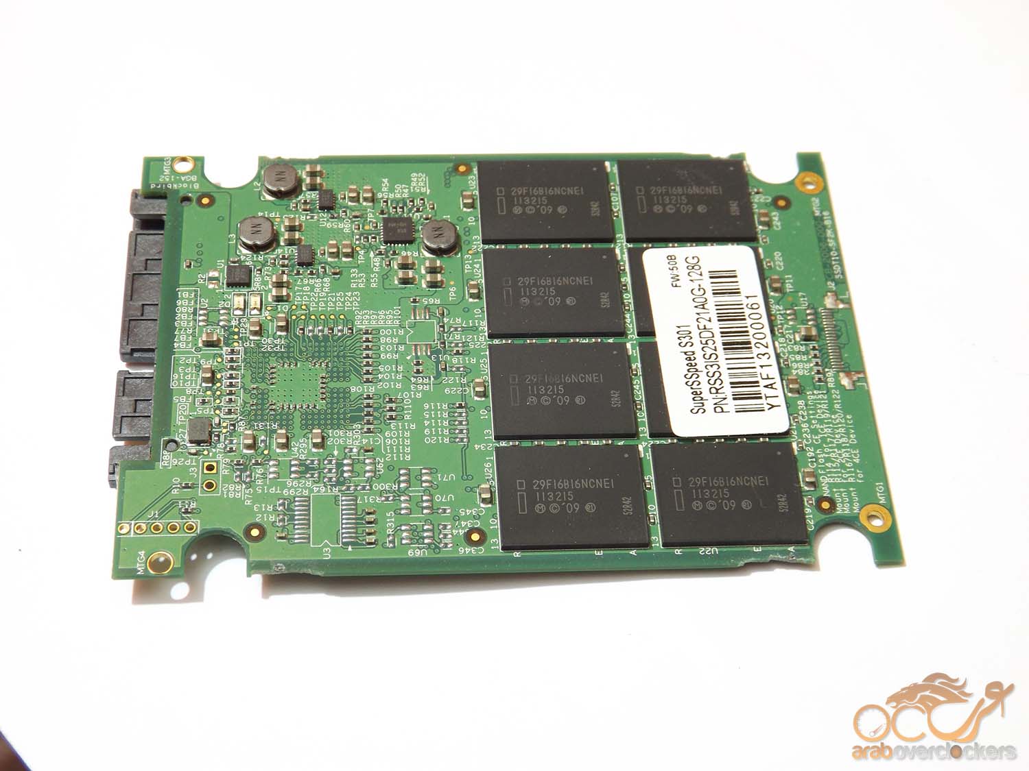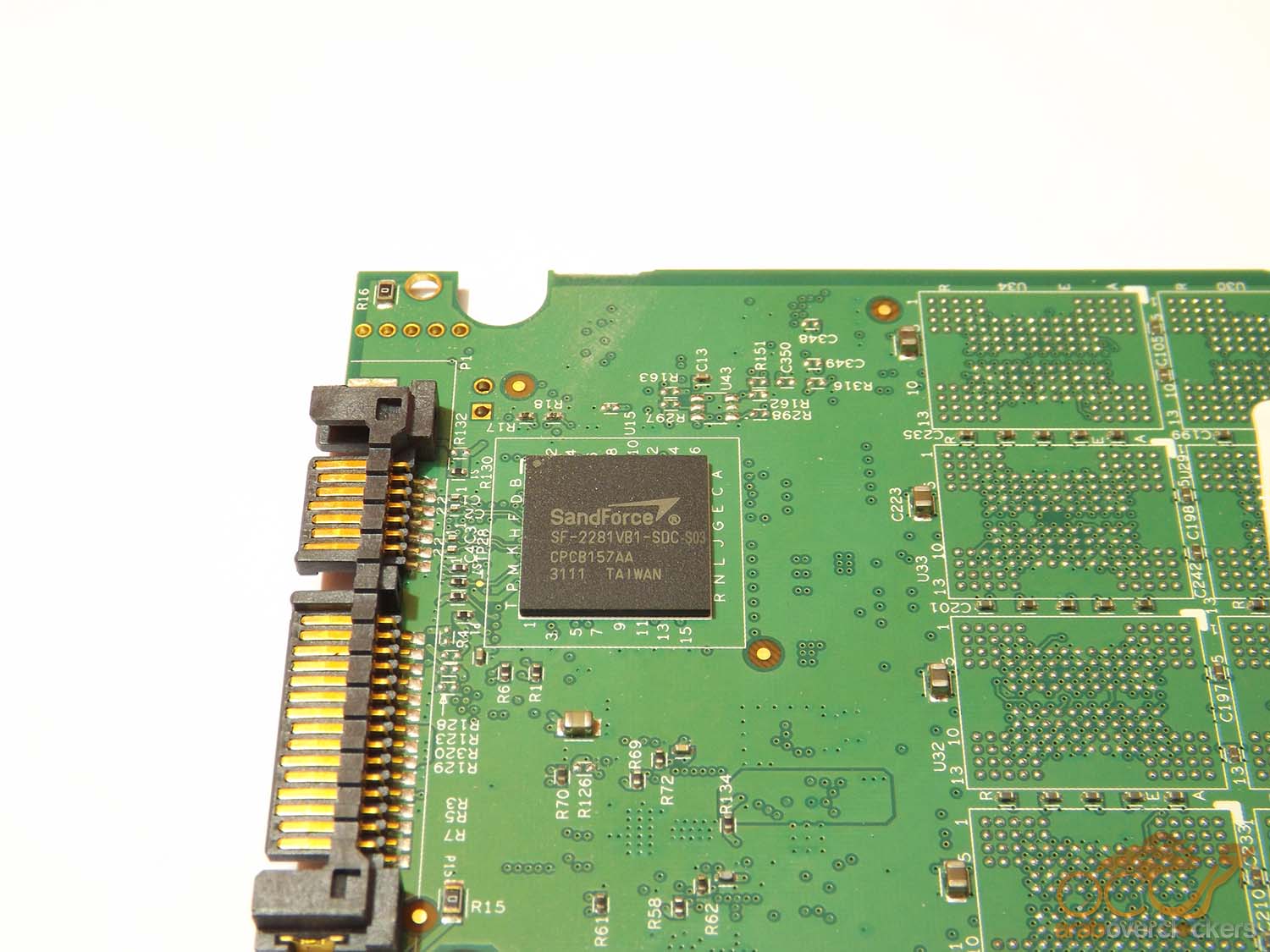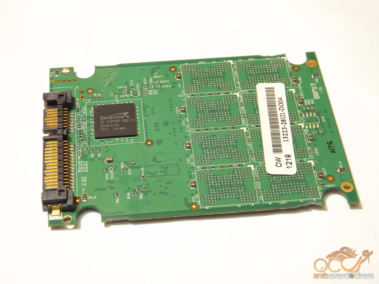 الجهة المقابلة لا شئ مثبت عليها سوي شريحة المتحكم من LSI Sandforce وبرقم كودي SF-2281VB1-SDC ومُصنعة في تايوان.