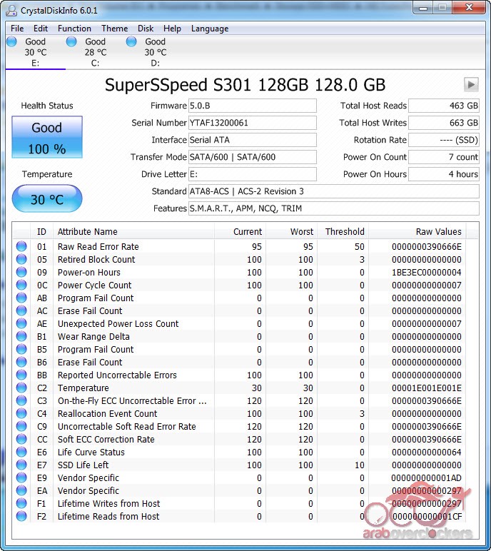 صورة لبيانات القرص من برنامج CrystalDiskInfo