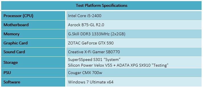 تم إستخدام منفذ الساتا الوحيد الداعم لتقنية SATA 6Gb\s القادم مباشرة من شريحة B75 والذي أعتمد عليه في توصيل قرص النظام الخاص بي Silicon Power V70. وتم أستخدامة في توصيل قرص الأختبار من Richmax.