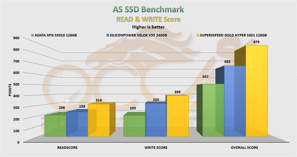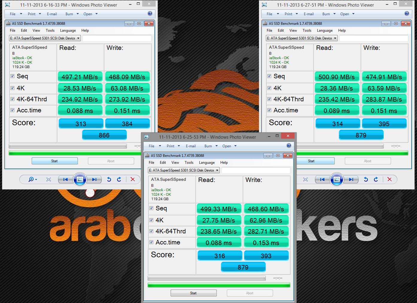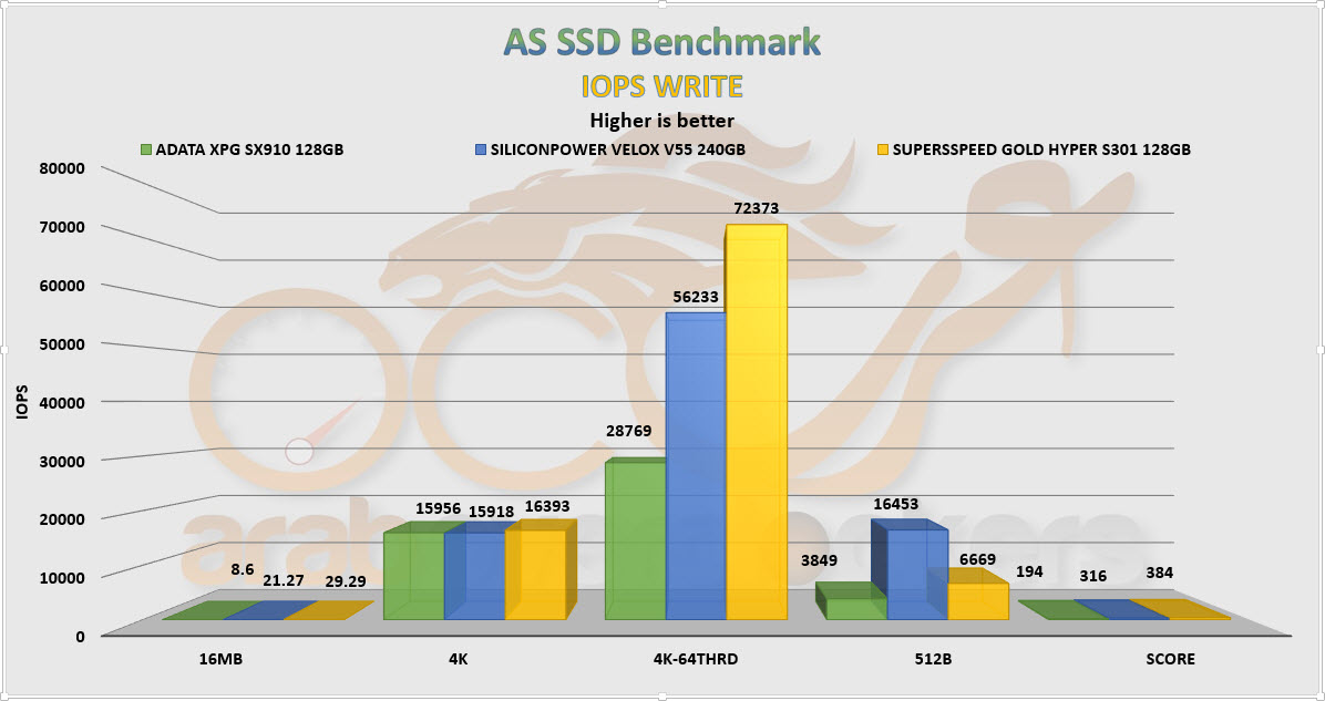 تفوق قرص اليوم علي مثيلة بنفس الحجم من شركة ADATA في إختبار القراءة واجتازهما قرص Silicon Power, لكن وبالطبع كانت الغلبة الساحقة لقرص SuperSSPeed في مجال الكتابة.
