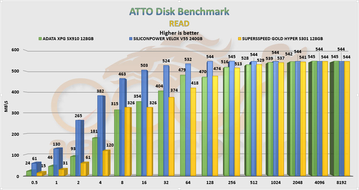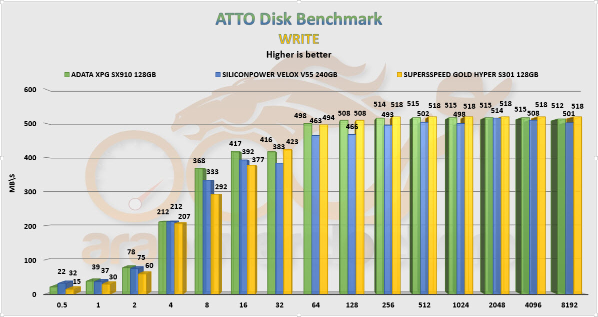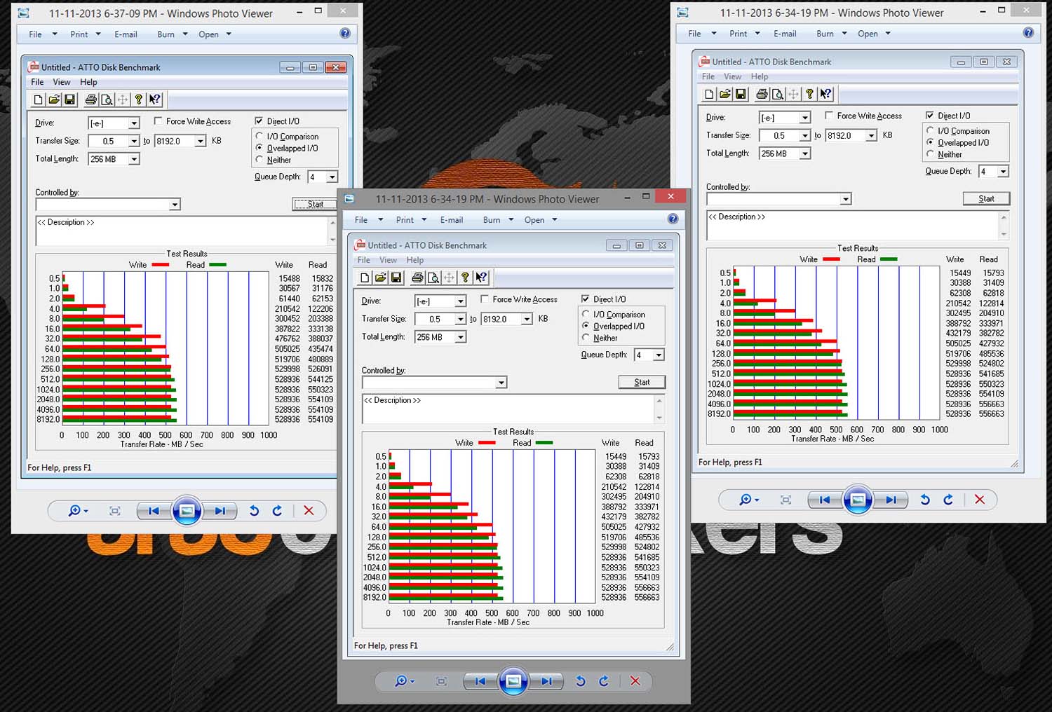 سرعة قصوي تكاد تكون متساويه بين الثلاث أقراص وتفوق ضئيل لقرص SuperSSpeed في مجال الكتابة.