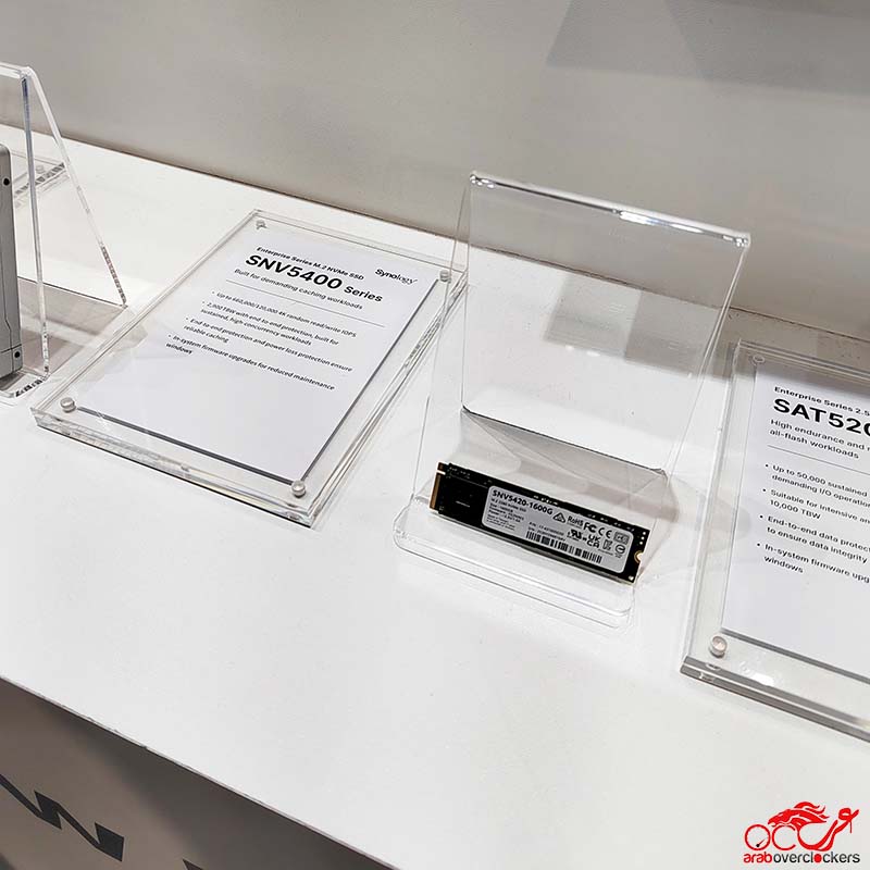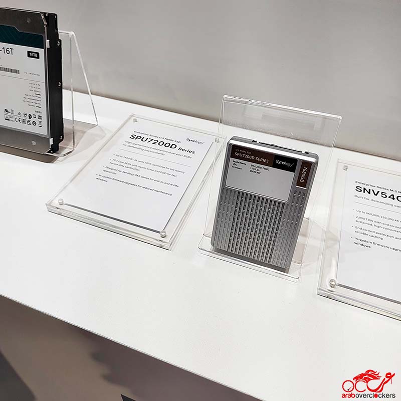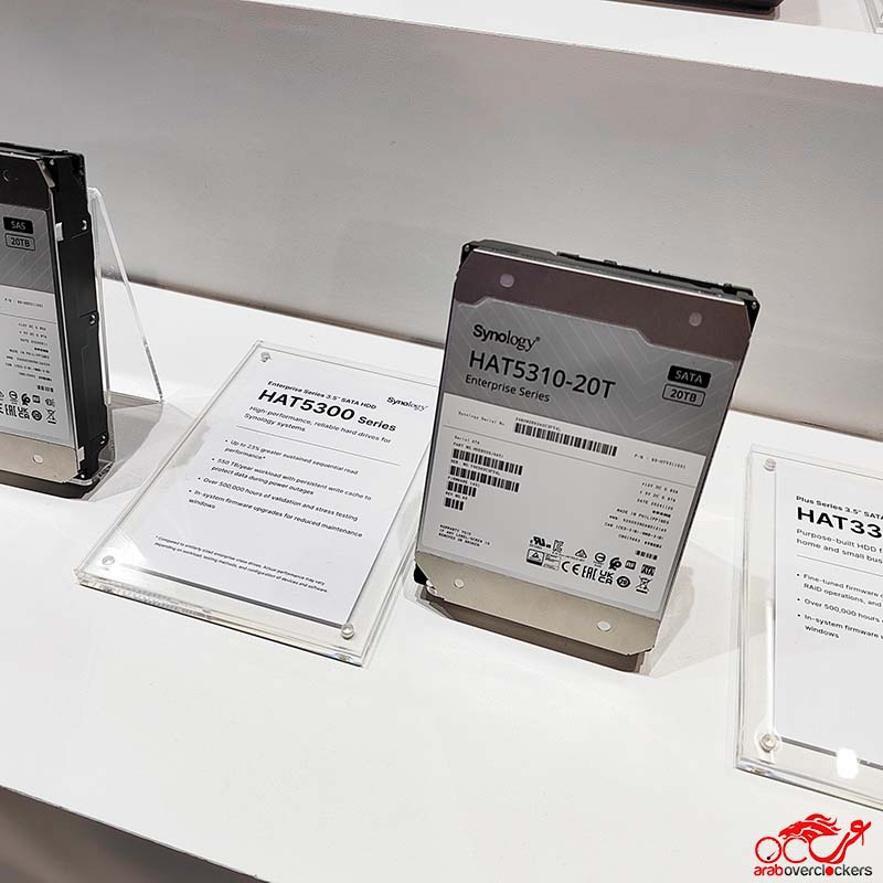 وأخيرًا، عرضت Synology قرص SPU7200D – أول أقراصها من فئة U.3 NVMe المزدوجة، لدعم أجهزة PAS. كما كشفت عن HAT5300 بسعة 20 تيرابايت، أكبر قرص HDD في تاريخ الشركة، بمعدلات موثوقية وتحمل عالية جدًا.