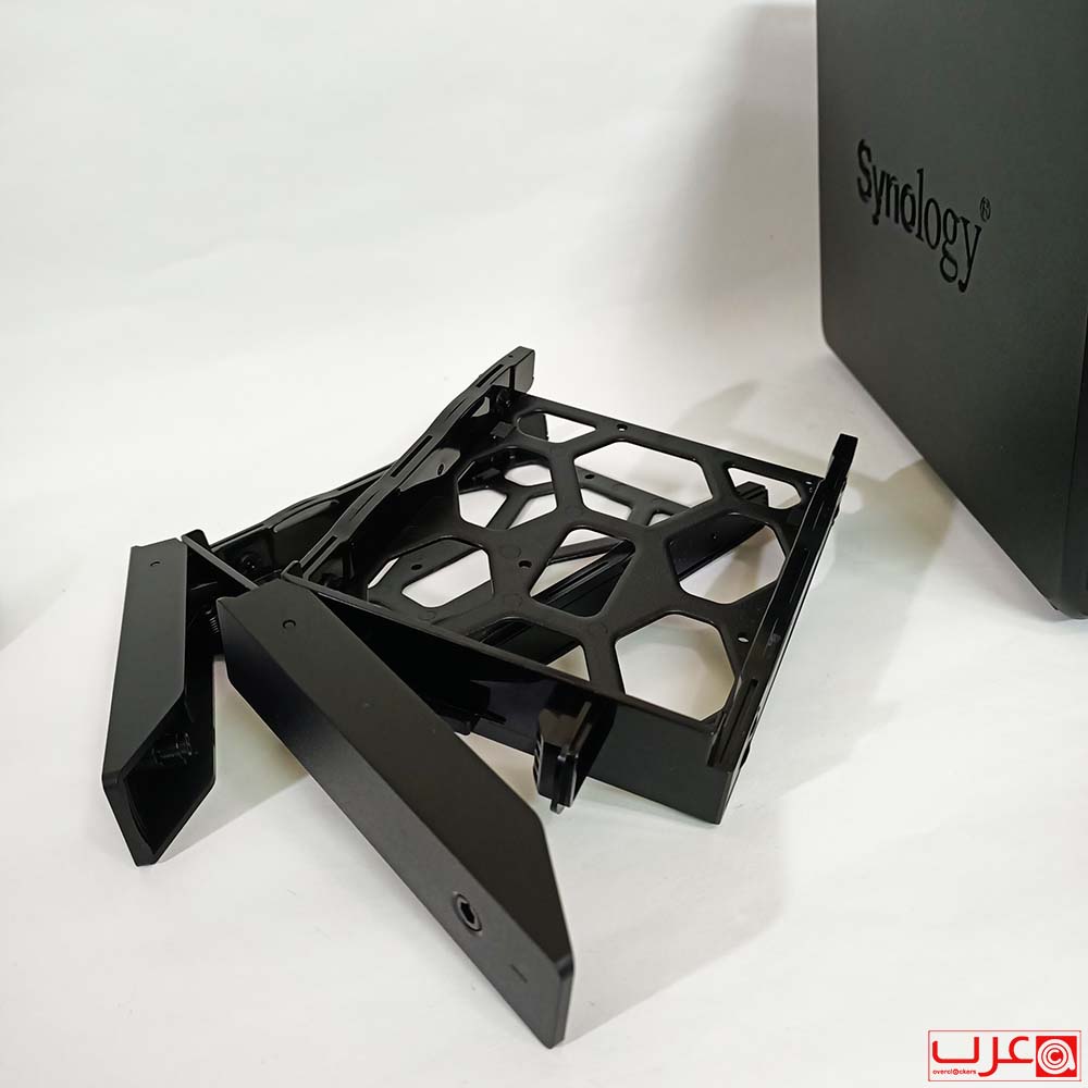الامر الجيد بشكل خاص في فتحات M.2 هذه هو أنها تستخدم مشبكًا مرنًا في أحد طرفيه بدلاً من المسمار الصغير الذي يسهل إسقاطه عند التثبيت. فسقوط احد هذه المسامير داخل ال NAS قد يكون كارثيًا، لذا فإن تجنب هذا الاحتمال هو خطوة ذكية من جانب المصمم.