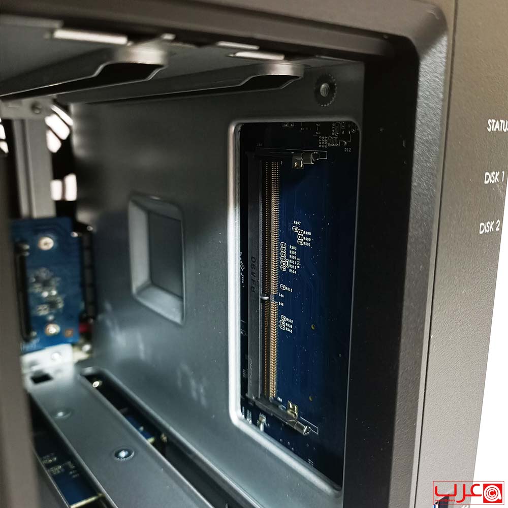 وبالنسبة لأولئك الذين يقومون بتشغيل التطبيقات على NAS مباشرة، فأن DS720 + يتمتع بذاكرة داخلية معززة بحجم 2 جيجابايت مثبتة مسبقًا يمكن زيادتها حتى 6 جيجابايت مع إضافة 4 جيجابايت اخرى من نوع DDR4 SODIMM. وكما هو الحال مع محركات NVMe، لا يتطلب تثبيت هذه الذاكرة تفكيك ال NAS، حيث يمكن الوصول إلى مكان التثبيت على الحافة عندما تكون كلتا فتحات محركات الأقراص فارغة.