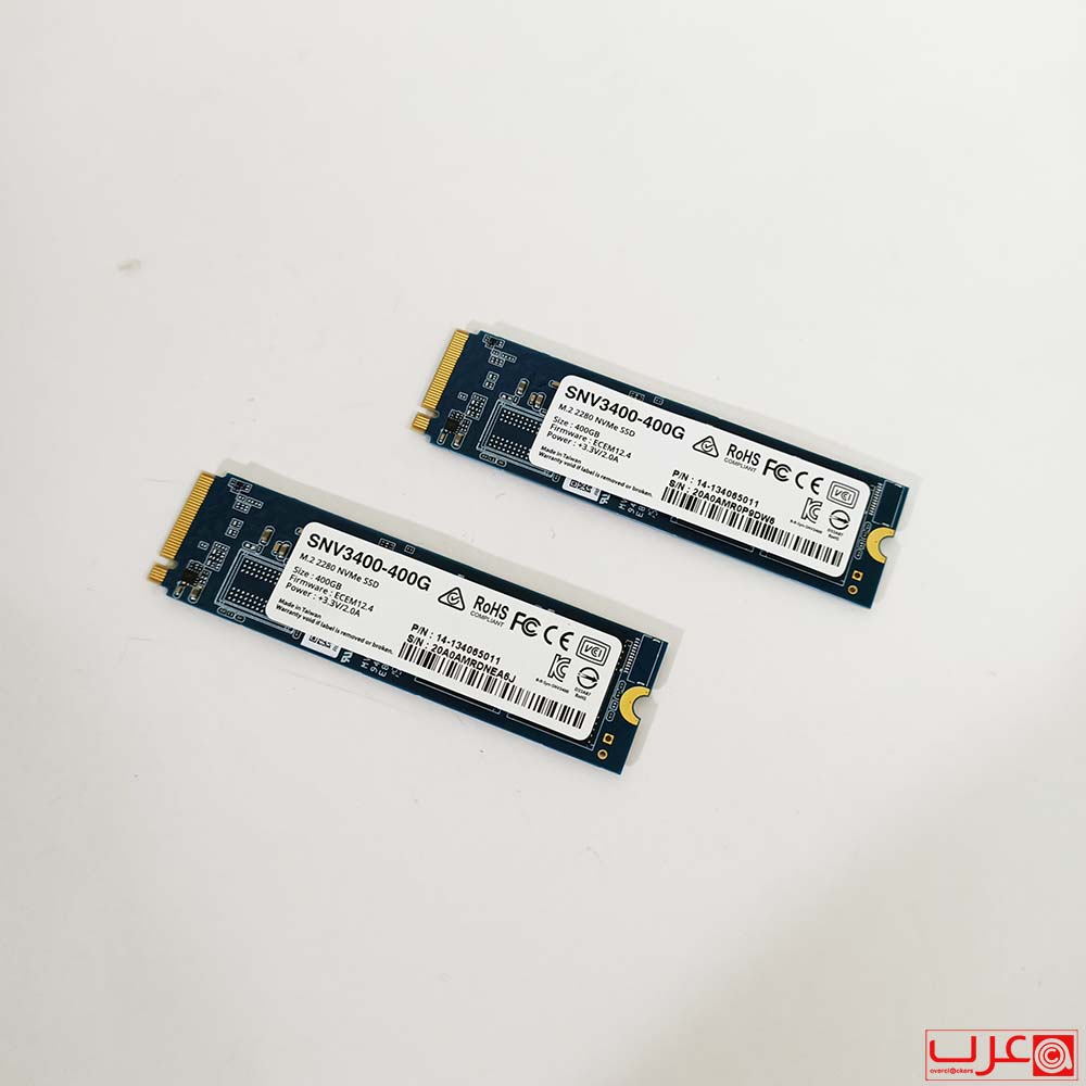 كما قدمت لنا Synology اقراص لاستخدام ميزة التخزين المؤقت من نوع SNV3400 بسعة 400 جيجابايت للقرص (تباع منفردة).