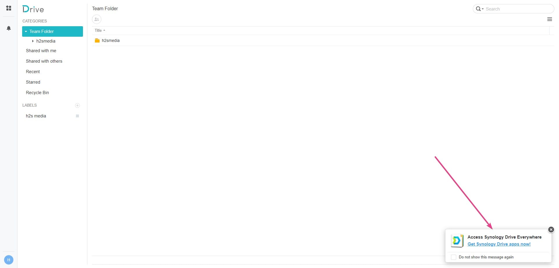الخطوة السادسة: افتح مجلد محرك الويب، لذلك ما عليك سوى النقر على أيقونة Synology Drive الواردة ضمن القائمة الرئيسية. لتنزيل تطبيق عميل Synology Drive للحاسب الشخصي أو الهاتف الذكي، استخدم الرابط المحدد.