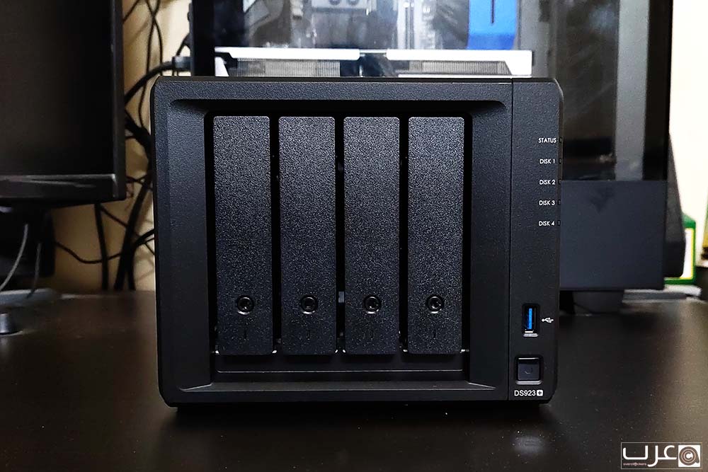 ويتميز DS923+ بفتحات لمحركات الاقراص مماثلة يمكن الوصول إليها من الأمام مع صواني محرك بلاستيكية قابلة للإزالة والقفل يمكن أن تأخذ محركي أقراص صلبة SATA أو SSD مقاس 3.5 أو 2.5 بوصة. وهناك منفذا إيثرنت 1 جيجابت في الخلف، إلى جانب منفذ e-SATA ومنافذ USB 3.0 (USB 3.1 Gen 1) في الأمام والخلف.