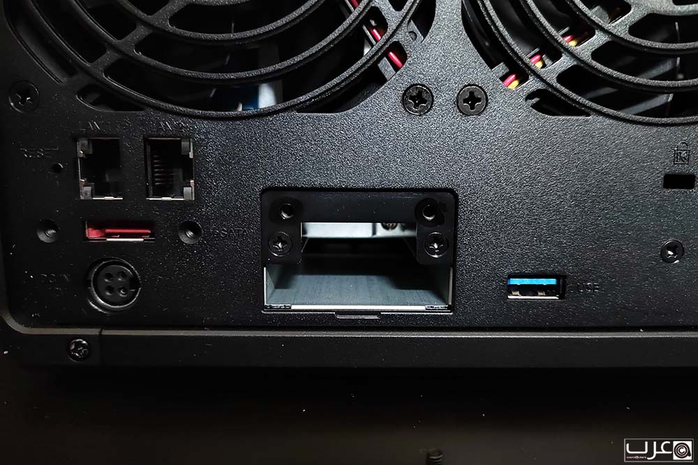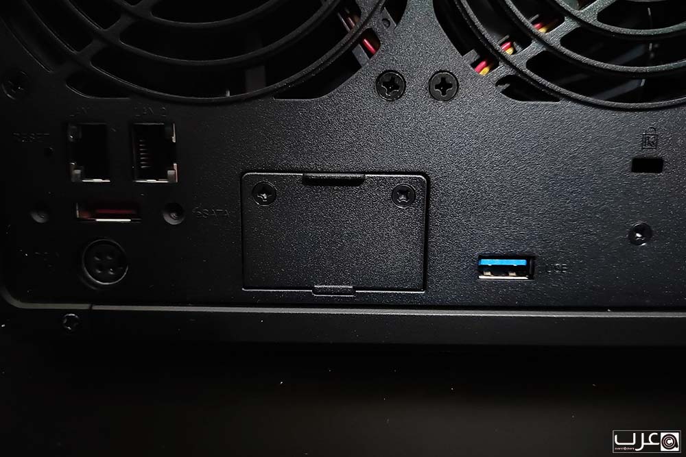 ويوجد بأسفل المنتج غطائان ممدودان قابلان للإزالة لتركيب محركات أقراص M.2 2280 NVMe SSD للتخزين المؤقت لمحركات الأقراص التقليدية المثبتة في الفتحات الداخلية. وهذه المرة الى جانب امكانية استخدام هذه المحركات للتخزين المؤقت فلديك خيار استخدامها كاحد اقراص التخزين الرئيسية للمصفوفة.