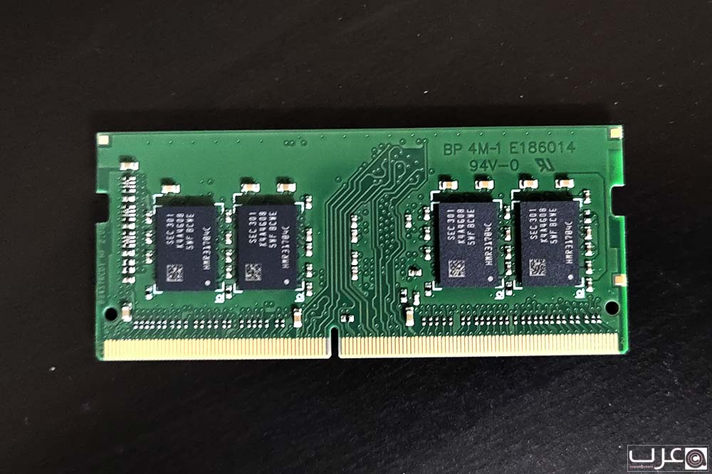 وقد اخترنا ذاكرة موديل D4ES02-4G وتأتي بحجم 4 جيجابايت وسرعة 2666 ميجاهرتز. ووصلت الينا الذاكرة كما ترون. وهكذا يصبح لدينا 8 جيجابايت من الذاكرة بتكوين 2x4GB (سنعمل على زيادتها الى اقصى سعة مستقبلا).