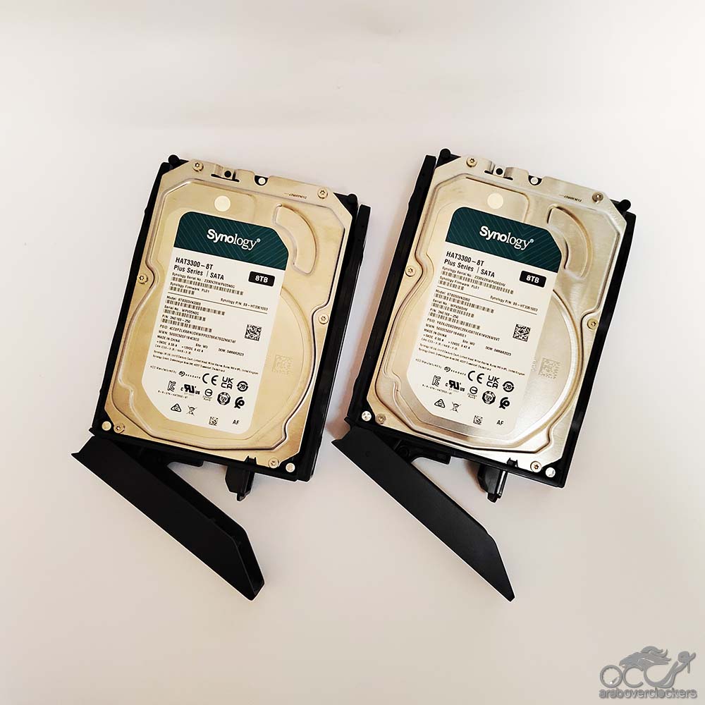 وقد استخدمنا اقراض تخزين HDD من Synology، ايضا، من سلسلة HAT3300 Plus بحجم 4 تيرابايت للقرص، في تشكيل بمجموع 16 تيرابايت.