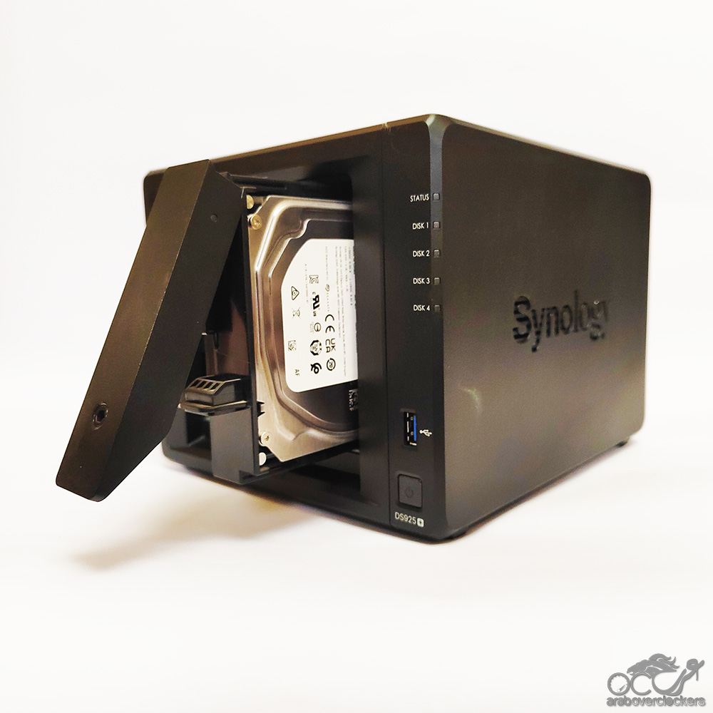 ويتميز DS925+ بفتحات لمحركات الاقراص مماثلة يمكن الوصول إليها من الأمام مع صواني محرك بلاستيكية قابلة للإزالة والقفل يمكن أن تأخذ محركي أقراص صلبة SATA أو SSD مقاس 3.5 أو 2.5 بوصة. وهناك منفذا إيثرنت 2.5GbE جيجابت في الخلف، إلى جانب منفذ USB-C ومنافذ USB 3.0 (USB 3.1 Gen 1) في الأمام والخلف.