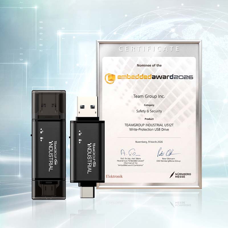 أعلنت شركة Team Group أن وحدة التخزين TEAMGROUP INDUSTRIAL U512T Write-Protection USB قد فازت بجائزة Embedded Award 2026 ضمن فئة السلامة والأمن (Safety & Security)، وذلك بفضل تصميمها المبتكر وتقنياتها المتقدمة في حماية البيانات.