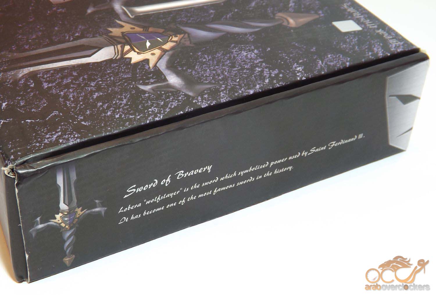 شعار الشركة وأسم اللوحة وصورة للسيف الذي يفترض بأنه سيف Lobera.