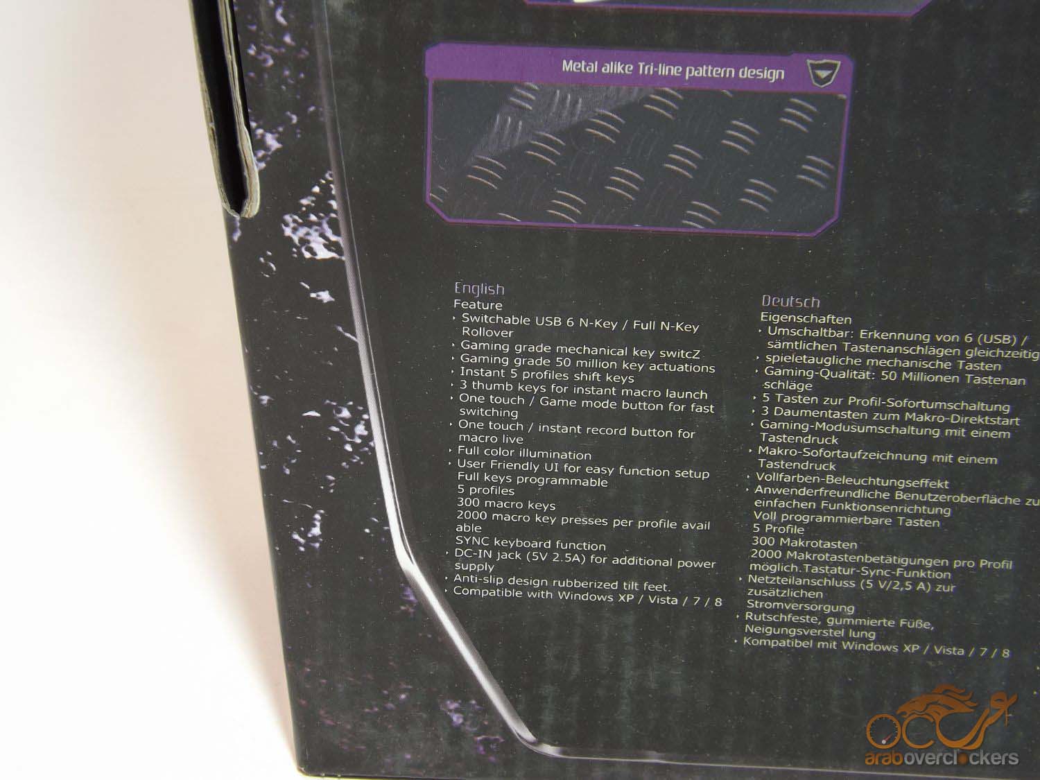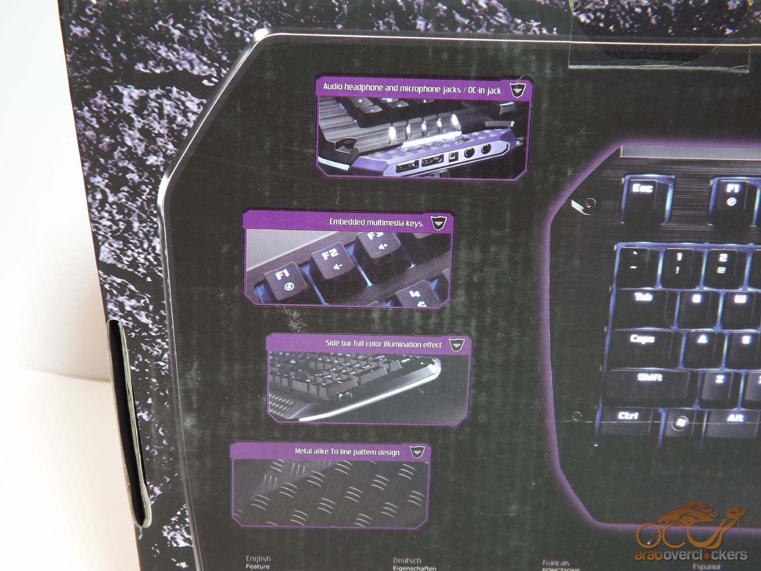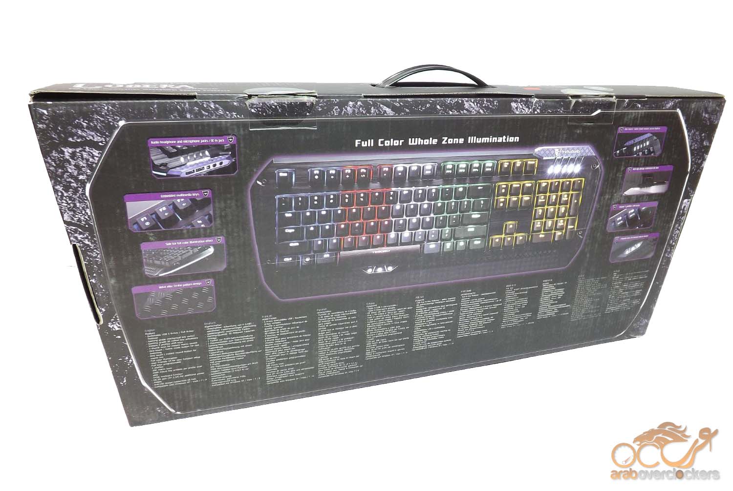 الخلف يحوي صورة للوحة المفاتيح بإضاءات خلفية مختلفة الألوان وهو من قدرات لوحة المفاتيح المتميزة.