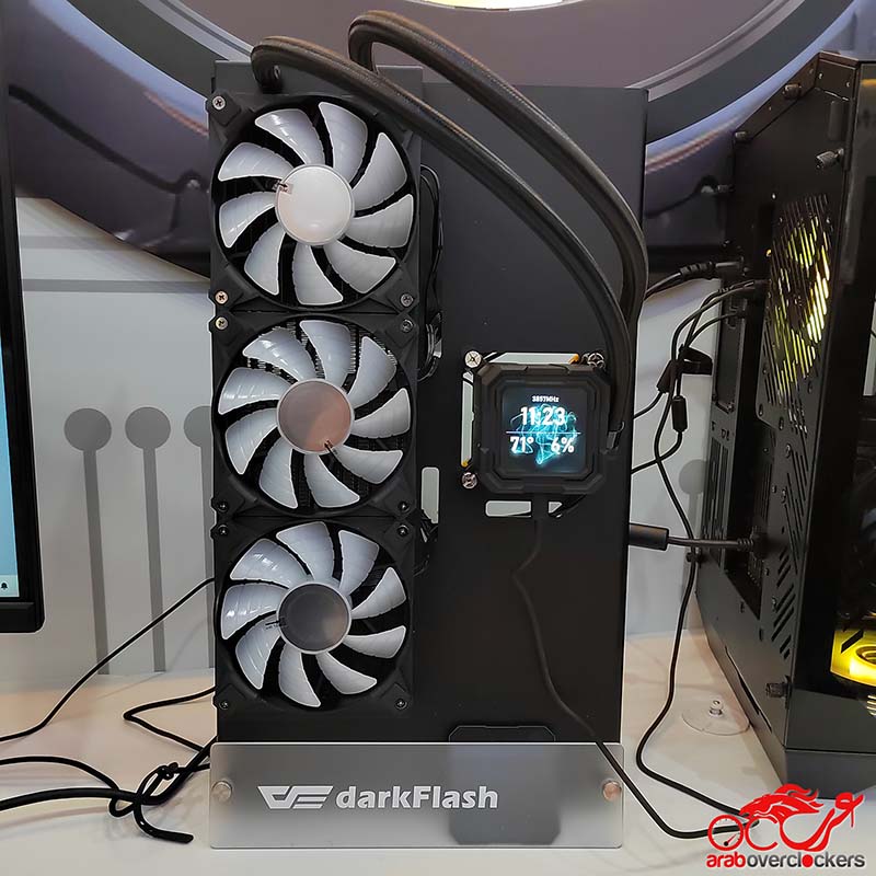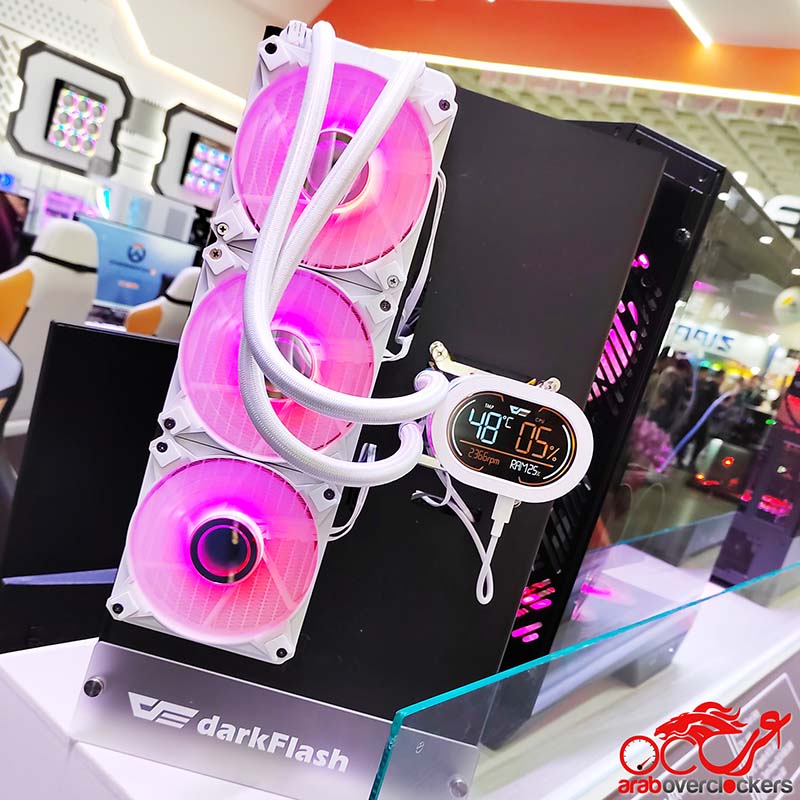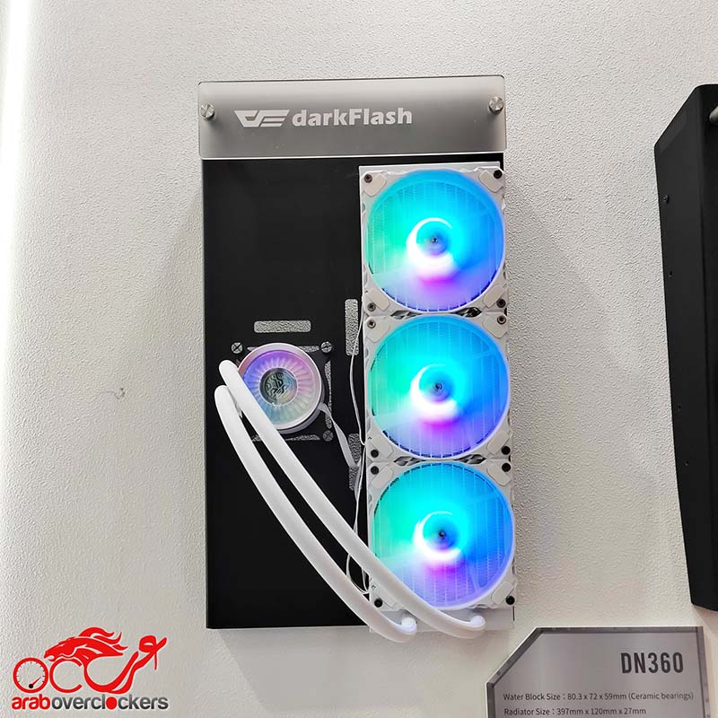 كان أحد أبرز المعروضات هو المبرد السائل DN IPS. هذا المبرد المبتكر لا يدير الأداء الحراري فقط، بل يتميز أيضًا بشاشة عرض مدمجة. يمكن للمستخدمين مراقبة أداء نظامهم وتخصيص الشاشة بصور وموضوعات مختلفة عبر برنامج darkFlash المخصص. هذا المزيج من الوظائف والتخصيص يميز DN IPS في سوق التبريد.