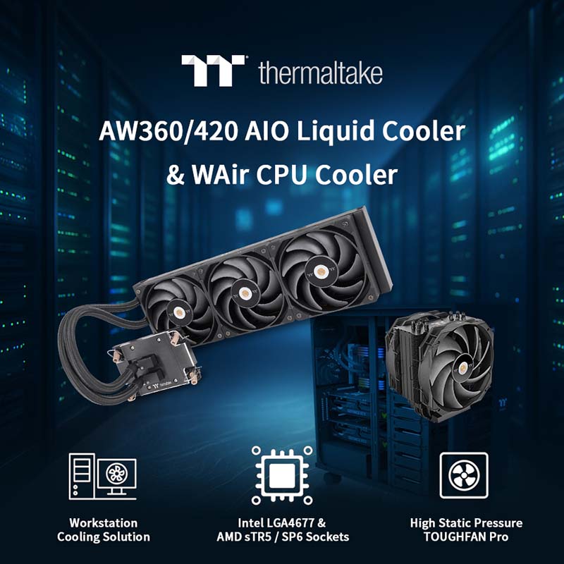 يُرسي مُبرّد AW360/420 AIO السائل ومُبرّد وحدة المعالجة المركزية WAir من Thermaltake معيارًا جديدًا لحلول تبريد محطات العمل، إذ يجمعان بين مواد عالية الجودة وتصميم متطور وتوافق مع منافذ التوصيل الخاصة بمحطات العمل. سواءً كنتَ بحاجة إلى سعة تبريد سائل لا مثيل لها أو موثوقية تبريد هوائي عالي الأداء، تُقدّم Thermaltake حلولاً مُصمّمة خصيصًا لتلبية أكثر التطبيقات الاحترافية تطلبًا، وهي مُتاحة الآن عبر شبكة Thermaltake العالمية من تجار التجزئة والموزعين.