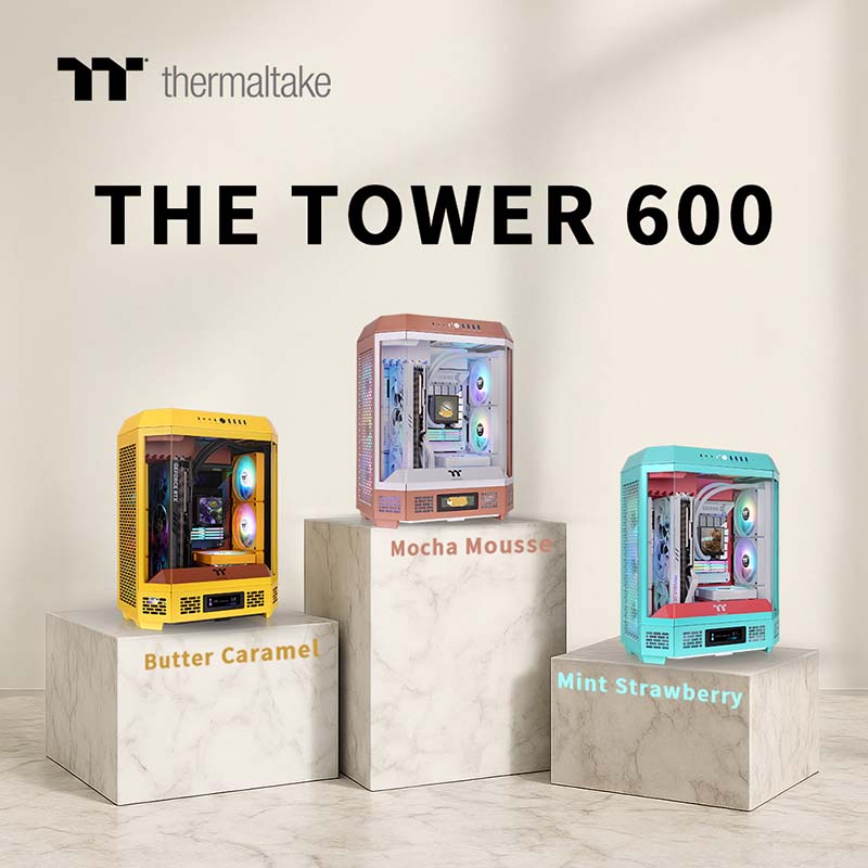 اعلنت شركة Thermaltake عن تقديم لمسة جديدة ومميزة لصندوق Tower 600 Mid Tower، وذلك بإضافة ثلاثة ألوان جديدة خلابة: نعناعي الفراولة، وزبدة الكراميل، وموس الموكا. تمزج هذه الألوان المستوحاة من الباستيل بين درجات الألوان الدافئة وسحر ألوان الحلوى، لتضفي حيويةً معبرةً على جهاز الكمبيوتر الخاص بك، وهي مثالية للاعبين والمبدعين الذين يرغبون في أن يبرز جهازهم بين الآخرين.