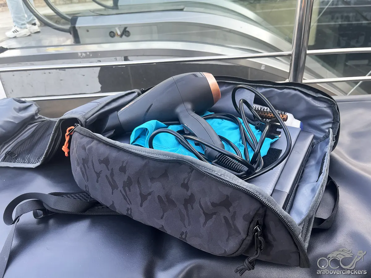 وعلى الرغم من امتلاء الحقيبة بهذه العناصر، بقيت المحتويات منظمة بفضل التصميم الداخلي المدروس.