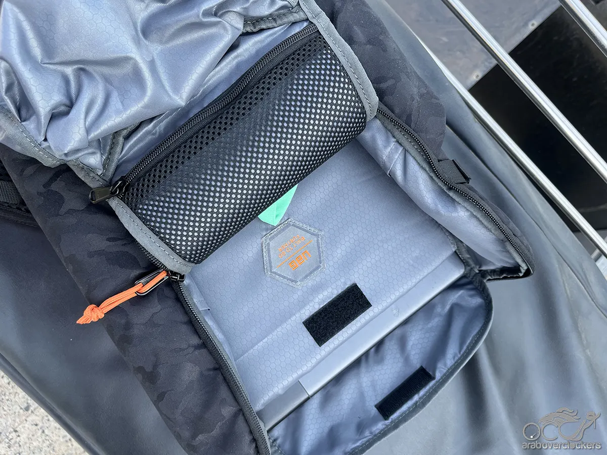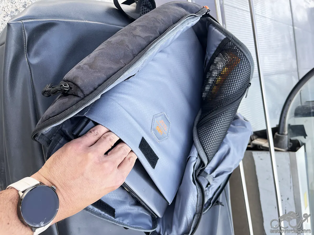 هذه الحجرة مبطنة بشكل جيد وتوفر حماية مناسبة للحاسوب المحمول أثناء التنقل. كما تحتوي على غطاء Velcro يساعد على تثبيت الجهاز ومنع تحركه داخل الحقيبة.