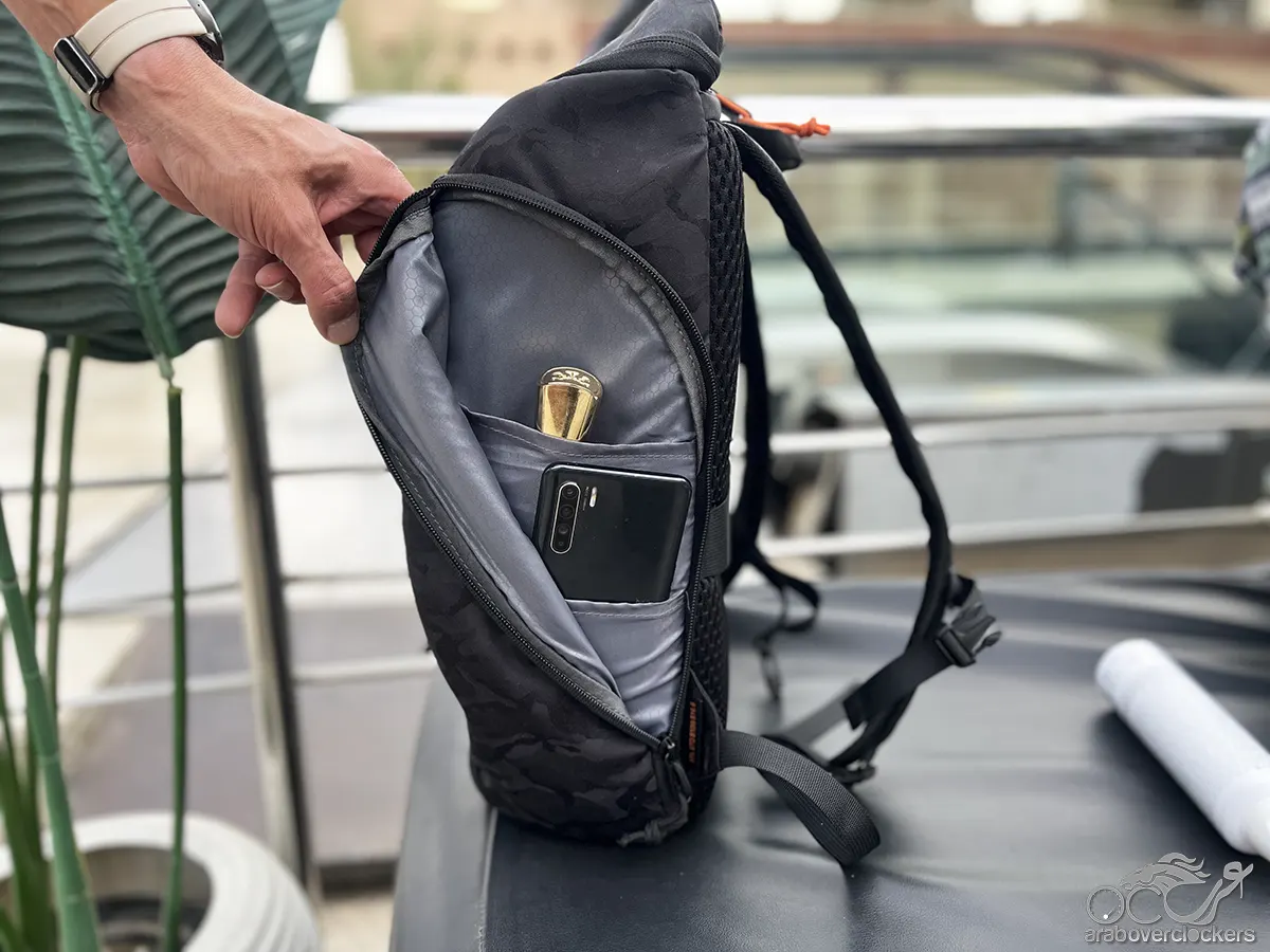 ميزة أخرى تستحق الإشارة هي موقع السحّابات في الجهة الخلفية للحقيبة، وهو تفصيل بسيط لكنه يضيف مستوى إضافيًا من الأمان أثناء التنقل في الأماكن المزدحمة. فعند ارتداء الحقيبة يصبح من الصعب على أي شخص فتحها دون أن يلاحظ المستخدم ذلك.