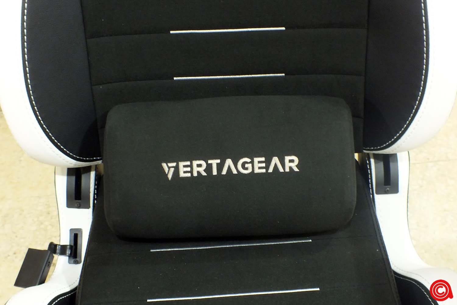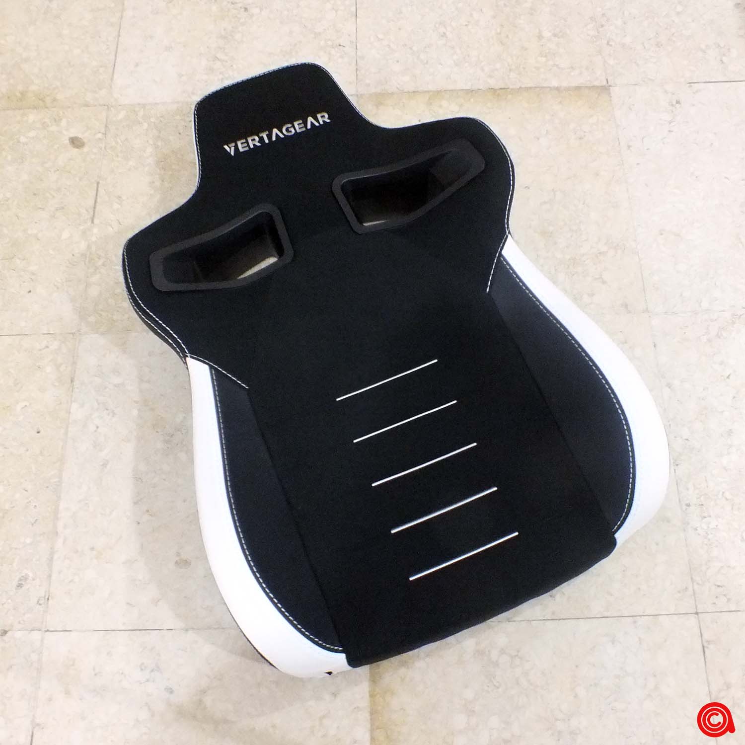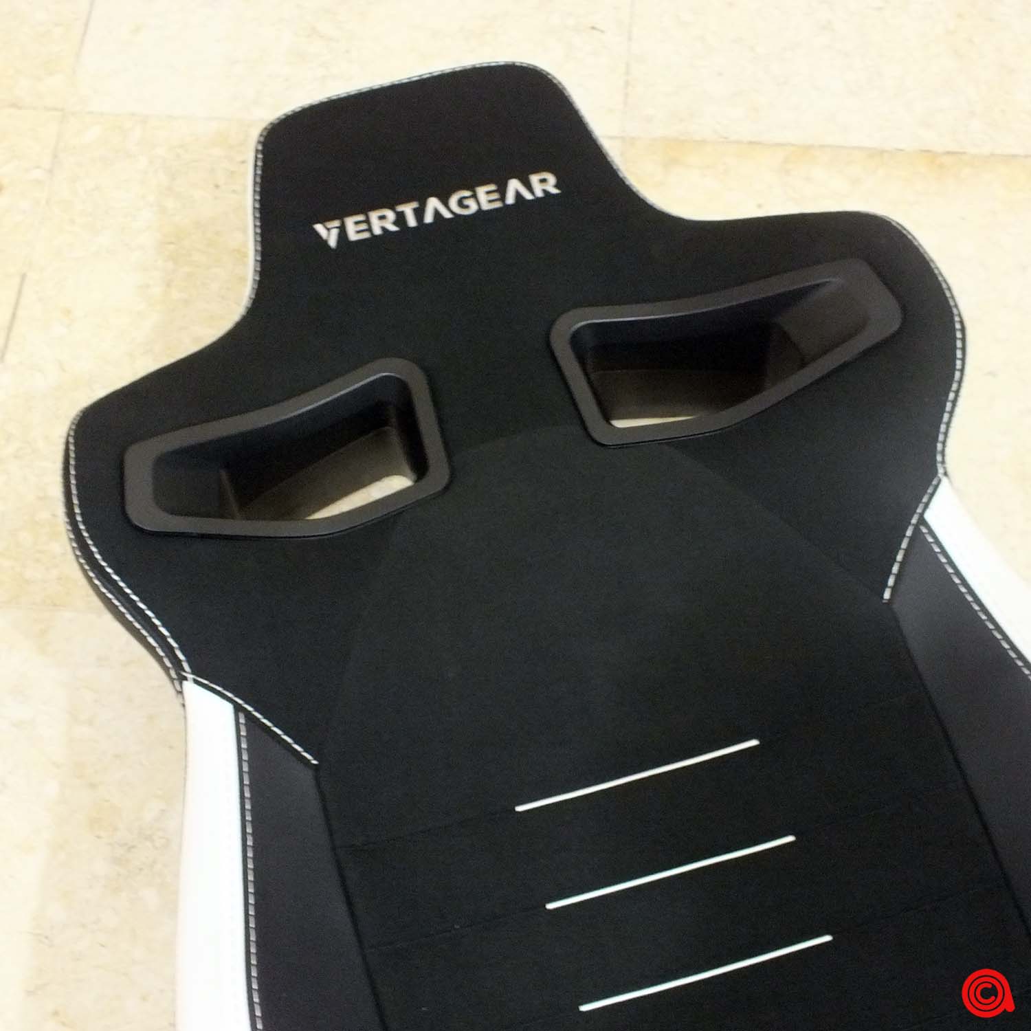 يستمر مسند الظهر مع الشكل الجمالي بالأبيض والأسود للمقعد، وفي الحقيقة يبدو كل شيء جيدًا. ستلاحظ في الصور الموجودة أسفل اسم “Vertagear” والذي يتكرر مع الشعار في الخلف.