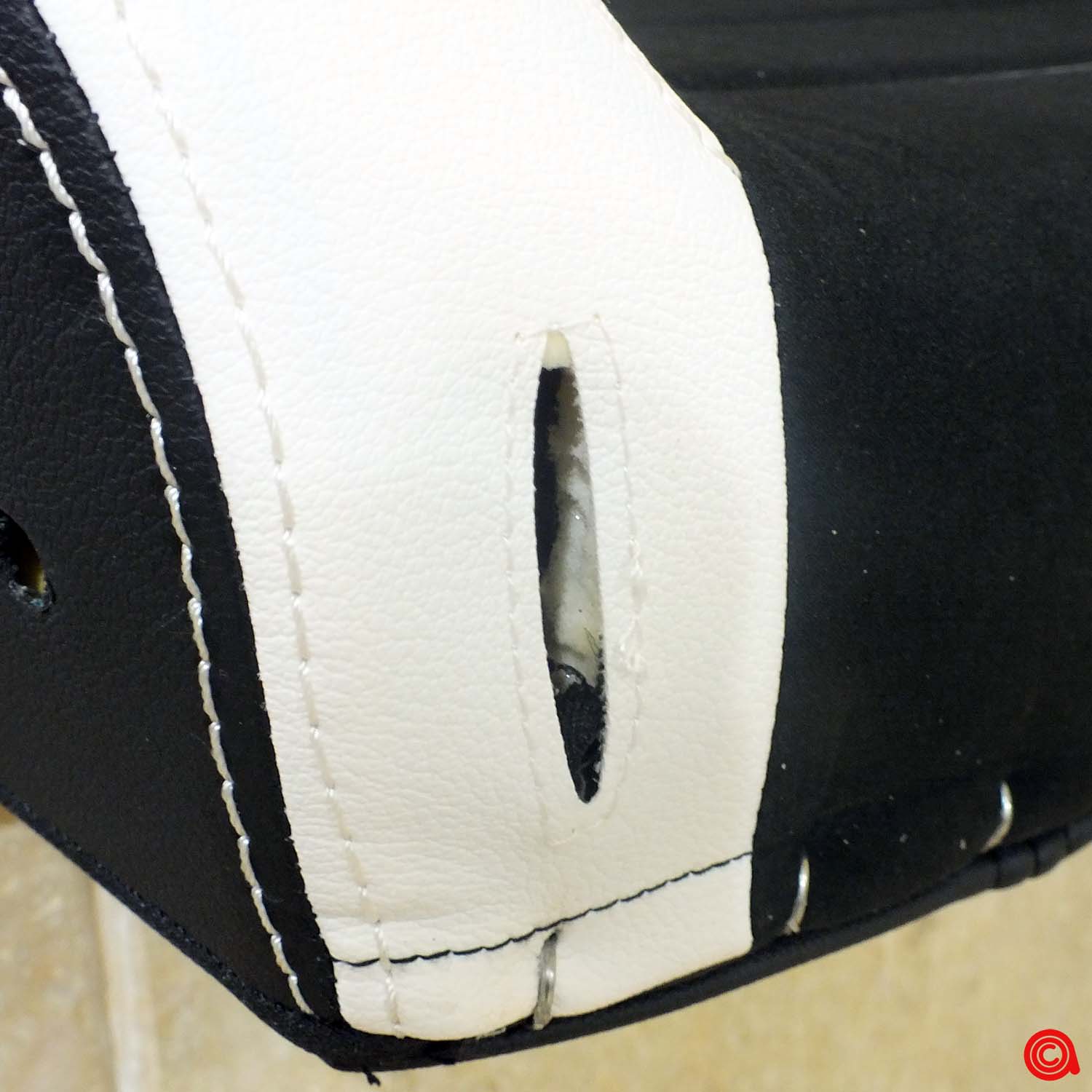 في حين أن التصميم ممتاز (حيث لا يوجد لديك لوحات معدنية في الجزء الخارجي من كرسي الألعاب) ، إلا أن هناك جانبًا منه يثير قلقي. بالنظر إلى أن المسامير تدخل في الجلد على الكرسي، لدي مخاوف من أن يؤدي التشديد المفرط إلى تمدد هذه المواد أو احتمال تمزقها.