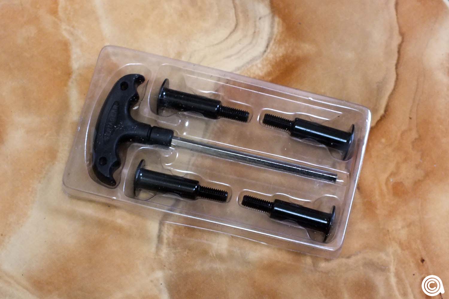 فيما يتعلق بالأجزاء، بخلاف مكونات الكرسي الرئيسية نفسها، يتم تزويدك بالأداة اللازمة لربط الأجزاء معًا بالإضافة إلى المسامير الأربعة الرئيسية التي تربط قاعدة الكرسي بمسند الظهر.