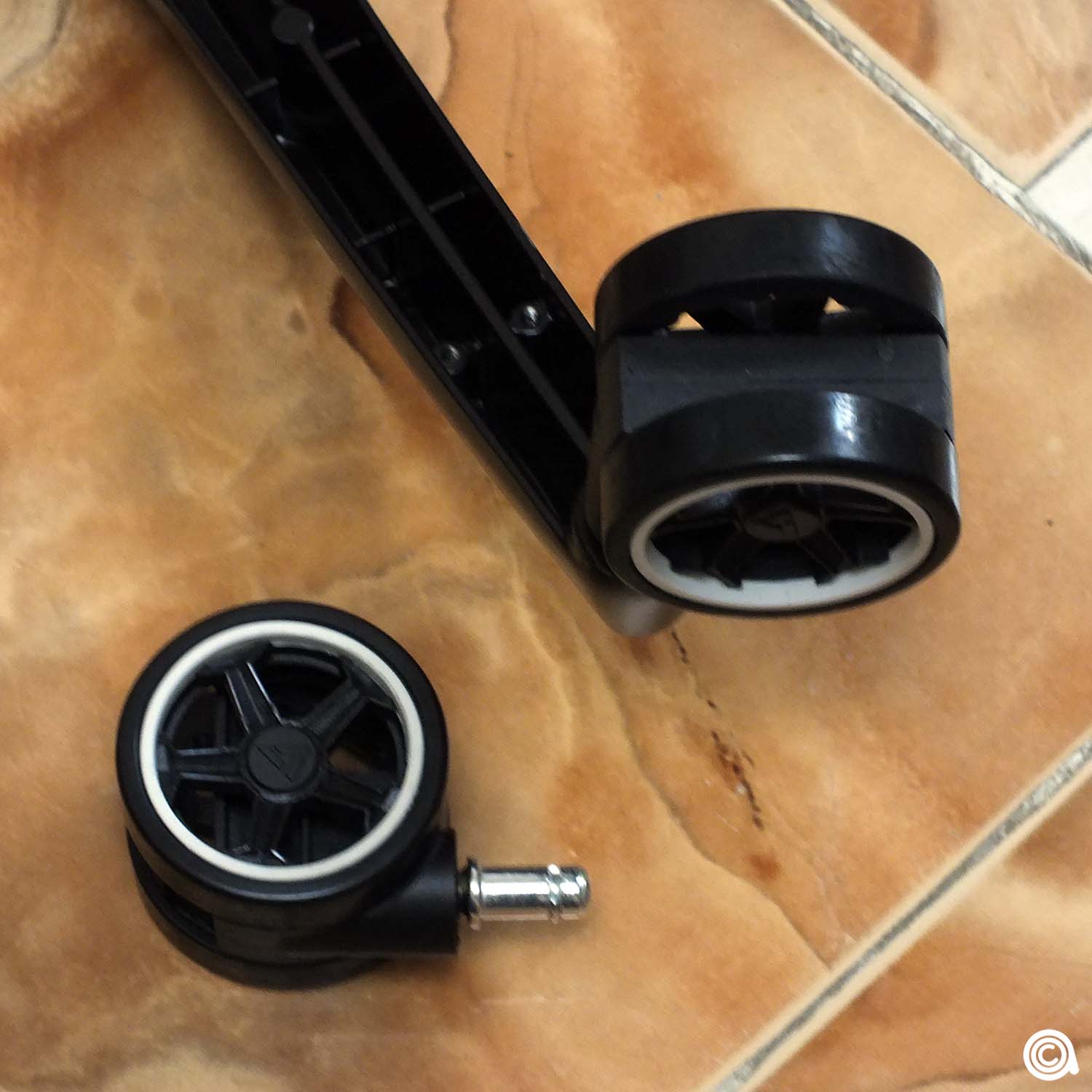 العجلات عبارة عن مزيج من البلاستيك والمعدن ويتم إدخالها جيدًا في ملحق القاعدة. إذا كان هناك أي شيء يجب قوله هنا فهو انه من السهل جدًا إزالتها وهو ما كان مفيدًا بالتأكيد بالنسبة لي عندما اضطررت إلى تفكيك كل هذا مرة أخرى.