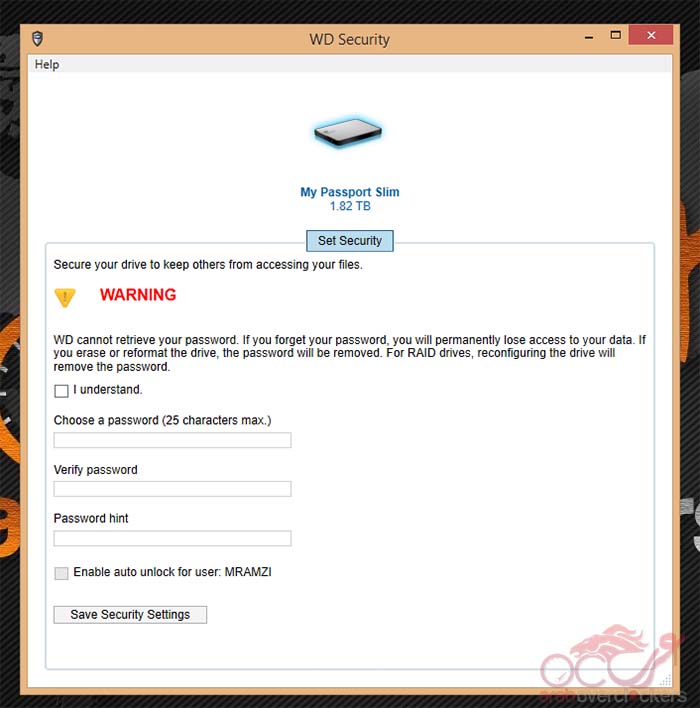 اهم شئ هنا هو شاشة الأمان Security التي تتيح لك الحفاظ عليها من العبث حتي لو قام أحدهم بمحاولة العبث بالقرص أو حتي في حالة فقد القرص لاقدر الله. والميزة الرائعة هنا أنها تتيح منح مستخدم ما بعينه صلاحيه التعامل مع القرص دون الحاجة لكلمة السر وذلك لجهاز حاسوب بعينه.