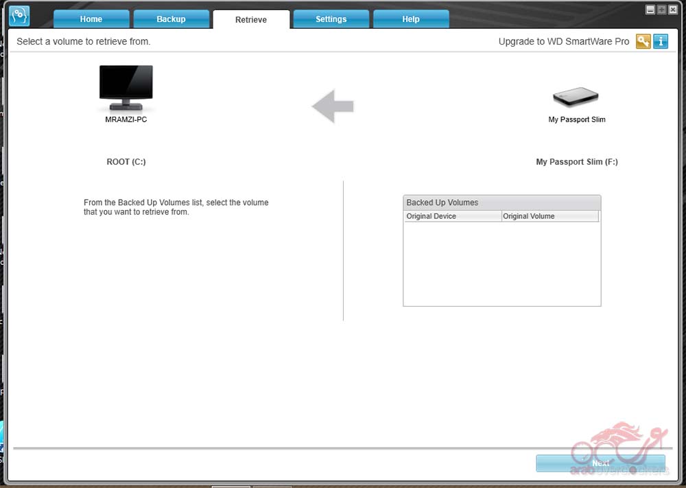 شاشة Retrieve خاصة بإعادة ما تم وضعه كنسخة احتياطية للقرص الأساسي فقط بضع اختيارات ثم تنقر Next.