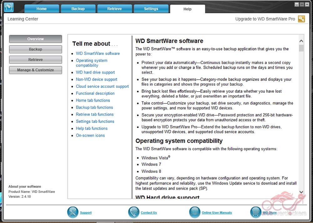 الأن مع جولة مع حزمة WD البرمجية المرفقه مع القرص.
