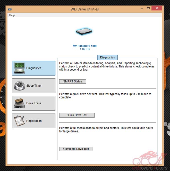 البرنامج الأخر هنا هو WD Drive utilities الذي يمنحك عدة مميزات أخري رائعة منها مثلاً اتاحة عملية متابعة حالة القرص وجعله يقوم بإختبار نفسة كل فتره وإعطائك تقارير حالة مستمرة أو حتي عمل فحص كامل للقرص والبحث عن اي اخطاء او قطاعات تالفة قد يكون معرفتها مسبقاً امر جيد فيحمي بياناتك.