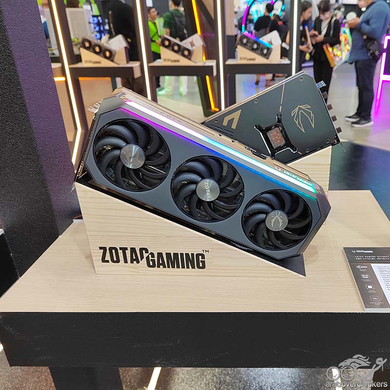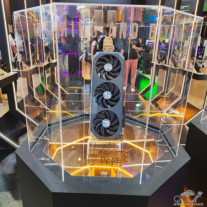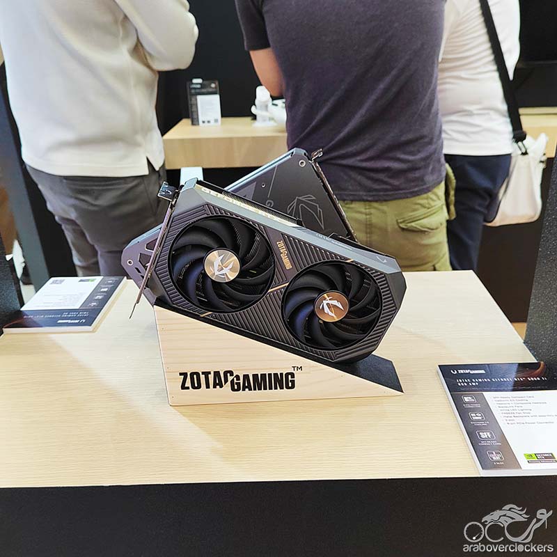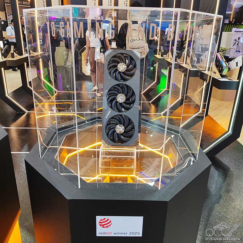 في مقدمة الجناح، عرضت ZOTAC سلسلة GeForce RTX 50 GAMING بتصميمها الذي نال جائزة Red Dot Design Award، بفضل الهيكل المعدني باللون الرمادي الغامق، والتفاصيل الهندسية، ولمسات الذهب التي تُضفي طابعًا أنيقًا وتعزز من صلابة البنية. كما تميزت بطاقة AMP Extreme INFINITY بمرآتها اللانهائية الأمامية، مما يجعلها نجمة صناديق العرض الزجاجي (fish tank).