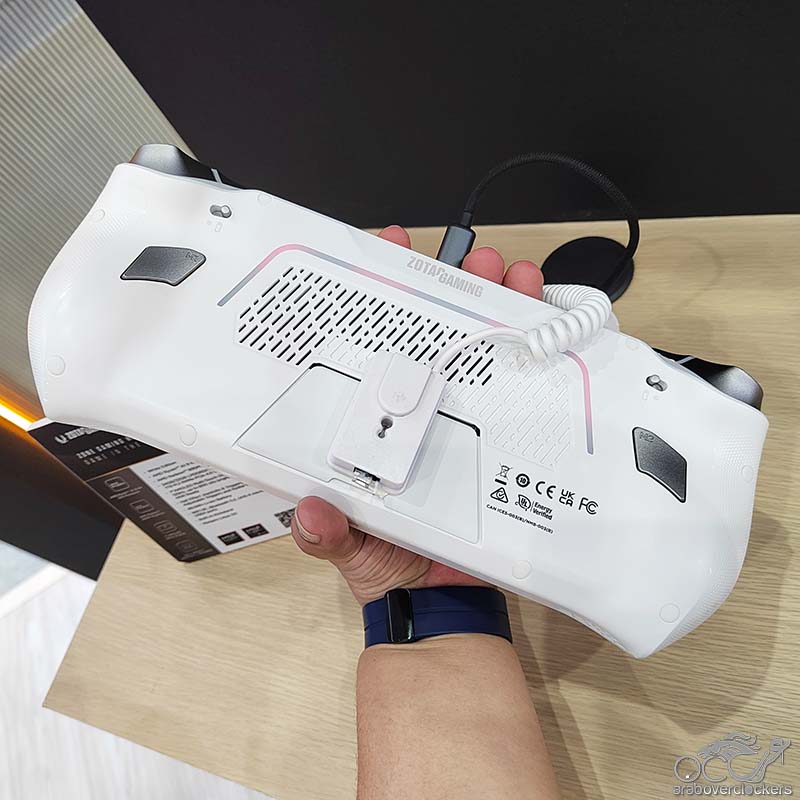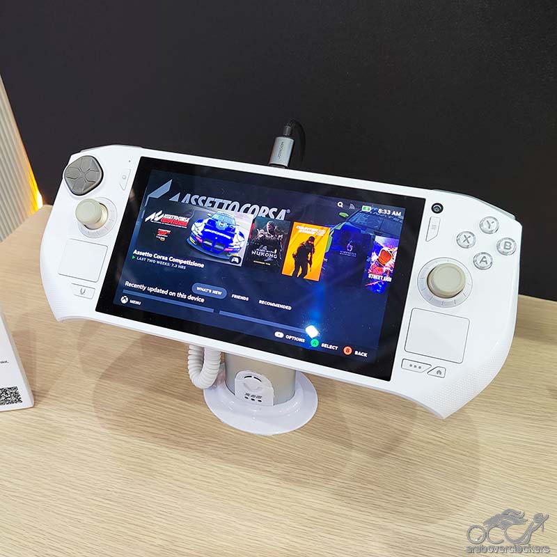 ويحتوي النموذج الأساسي منها على معالج AMD Ryzen 7 8840U، ورسوميات Radeon 780M، وذاكرة 16 جيجابايت LPDDR5X، وتخزين 512 جيجابايت PCIe 4.0 SSD. أما النموذج الجديد الأبيض المعروض في المعرض فقد شهد ترقية شاملة على مستوى المعالج والذاكرة ونظام التشغيل، ما يجعله أحد أقوى الأجهزة المحمولة القادمة في السوق.