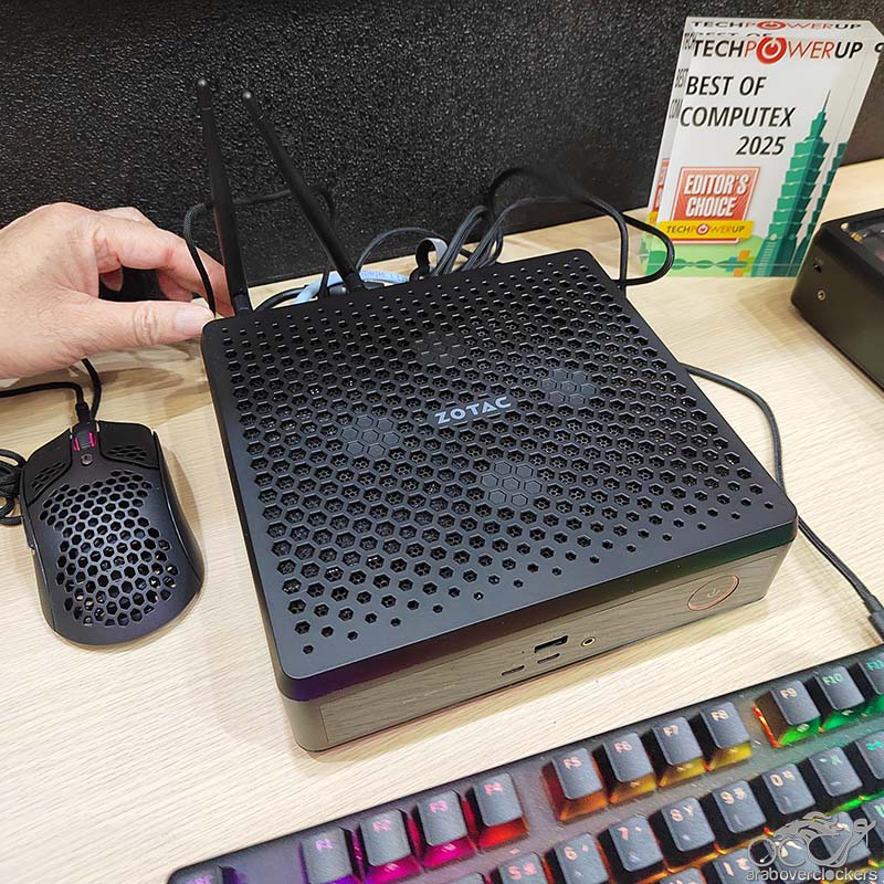 وقد تنوعت معروضات ZOTAC هذا العام بشكل لافت، لتشمل سلسلة موسعة من أجهزة ZBOX المصغرة، والإصدار الجديد من الجهاز المحمول ZONE، إلى جانب عدد من البطاقات الرسومية المتقدمة التي نالت جوائز تصميم عالمية. وكان من أبرز ما شهدناه في الجناح جهاز MAGNUS EN75060TC المصغر، الذي نال عن جدارة جائزة “BEST OF COMPUTEX 2025” من عرب اوفركلوكرز، نظراً لما يقدّمه من توازن مذهل بين الأداء العالي والتصميم فائق الصغر.