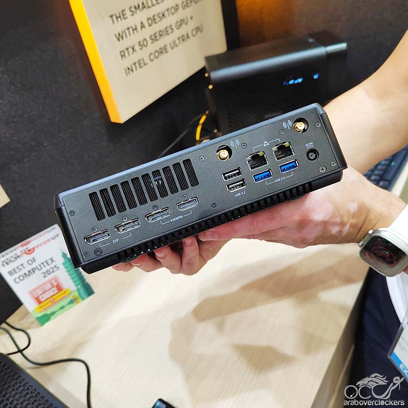 من أبرز ما لفت أنظار فريق عرب اوفركلوكرز كان الجهاز MAGNUS EN75060TC، الذي نجح في الجمع بين الأداء المكتبي الكامل والتصميم الفائق الصغر. ويأتي مزودًا ببطاقة GeForce RTX 5060 Ti من فئة سطح المكتب، ما يمنحه قدرة معالجة رسومية قوية في حجم لا يتجاوز 2.65 لترًا. وقد تم اختيار هذا الجهاز للفوز بجائزة “BEST OF COMPUTEX 2025” من عرب اوفركلوكرز، تقديرًا لتفوقه في تقديم تجربة أداء متكاملة وموجهة للاعبين والمستخدمين المحترفين في الوقت ذاته.