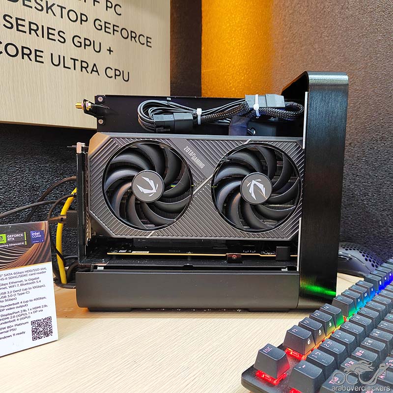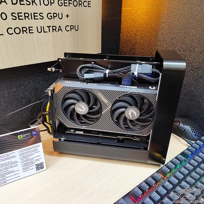 ولعل المفاجأة الأبرز كانت بطاقة RTX 5060 منخفضة الارتفاع (Low Profile)، التي ظهرت بنموذج ثلاثي المراوح ضمن العرض، رغم عدم الإعلان الرسمي عنها. البطاقة تدعم DLSS 4 وتعتمد على معمارية Blackwell، وتعد مثالية للحواسيب صغيرة الحجم.
